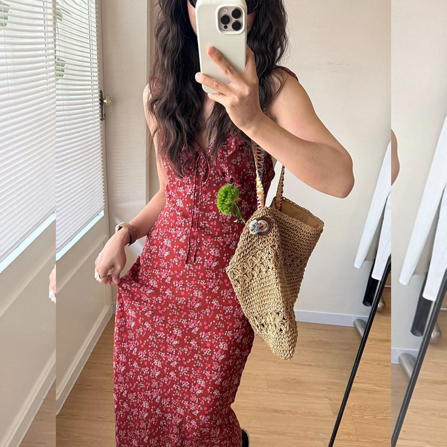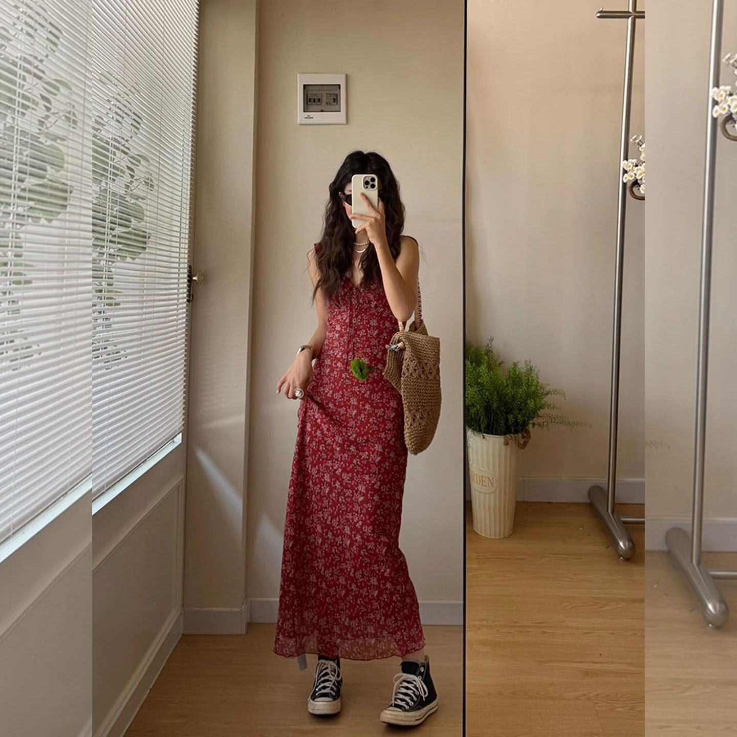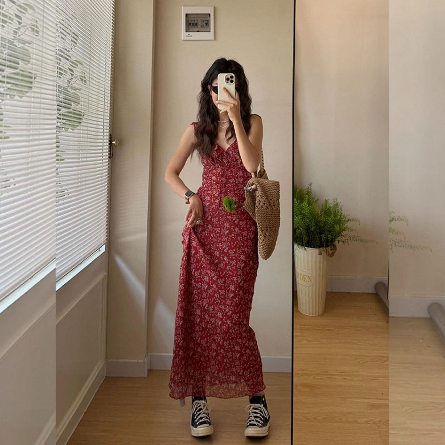 法式甜美度假风无袖连衣裙女2026夏季独特绝美掐腰红色V领吊带裙
