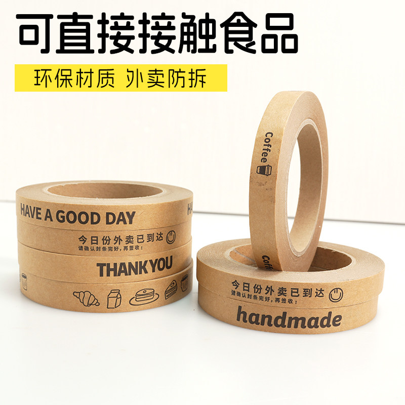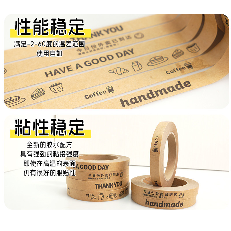 易撕牛皮纸封口贴高粘度奶茶咖啡烘培包装打包胶带环保美观