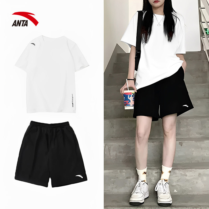 安踏速干运动套装女生2026夏季新款羽毛球跑步上衣中考短袖短裤女