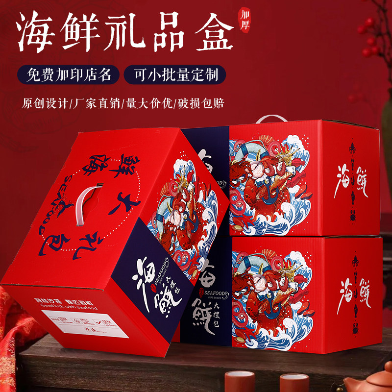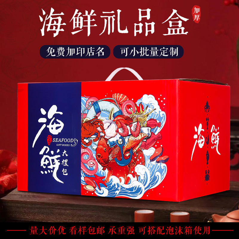 海鲜包装盒干货海产品礼品盒大礼包保鲜袋手提空盒瓦楞纸箱定制