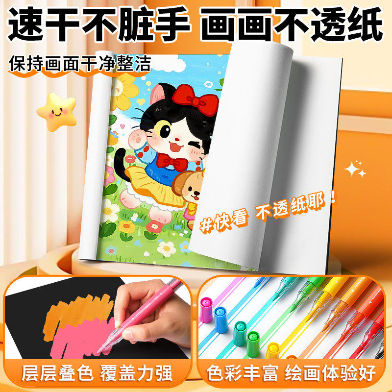 晨光丙烯马克笔学生专用儿童图画笔双软头丙烯马克笔涂鸦画笔美术专用可叠色速干水彩笔学生手账笔套装
