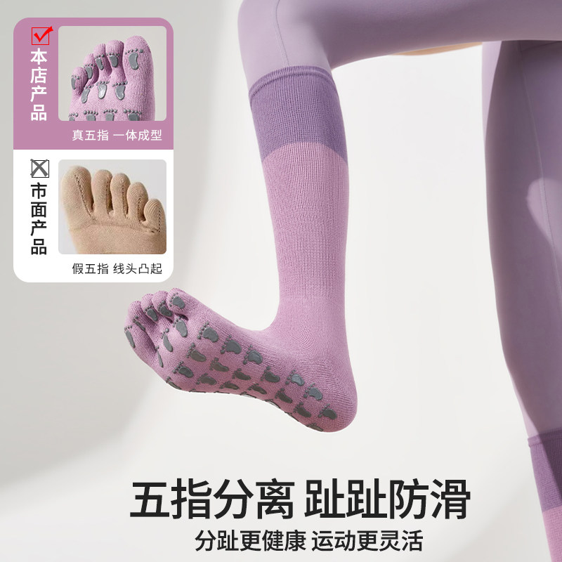 五指瑜伽袜子防滑专业女普拉提训练袜分趾中长筒2025新款室内专用