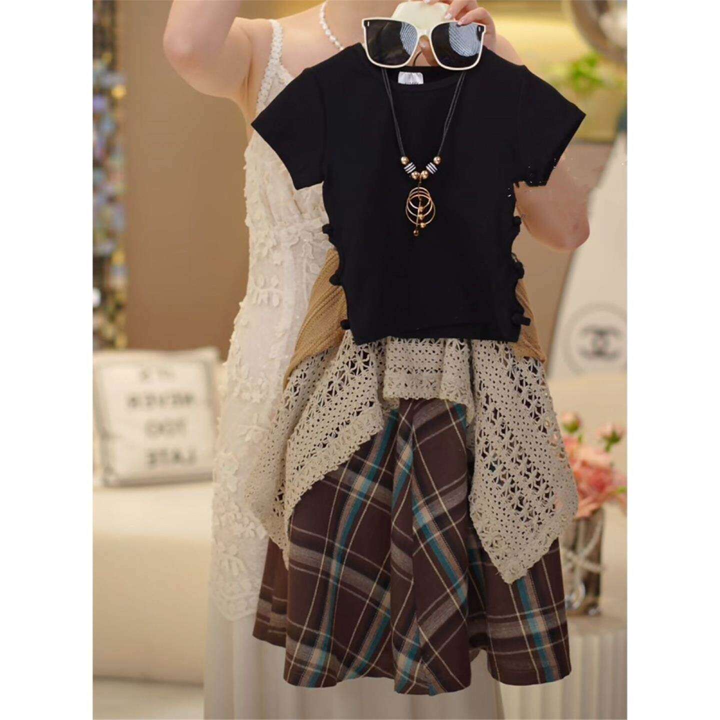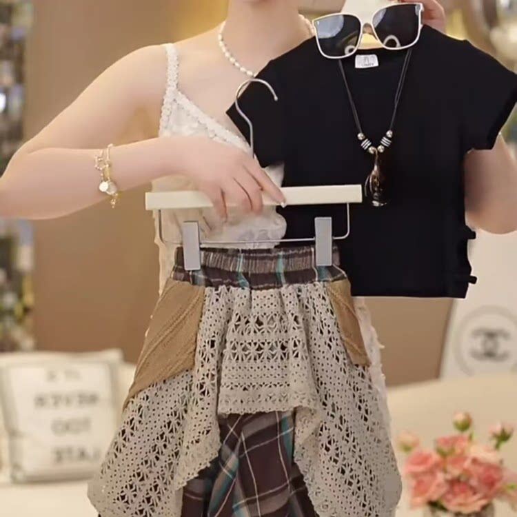 女童夏季网红森系套装裙子女大童洋气时髦夏装儿童不规则半身裙潮