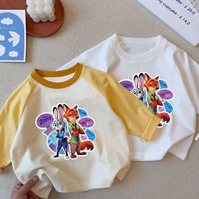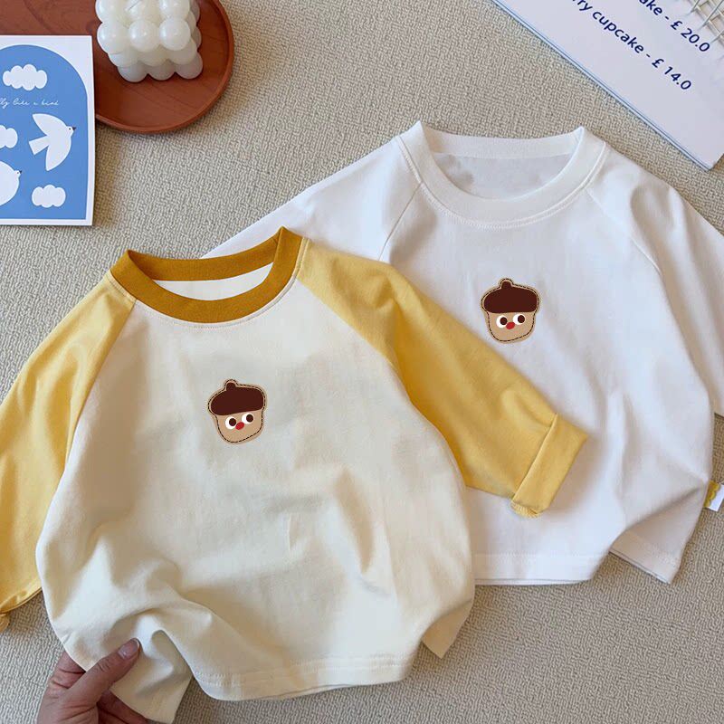 夏季纯棉新款男童女童休闲长袖T恤卡通印花打底衫薄款插肩袖T恤潮