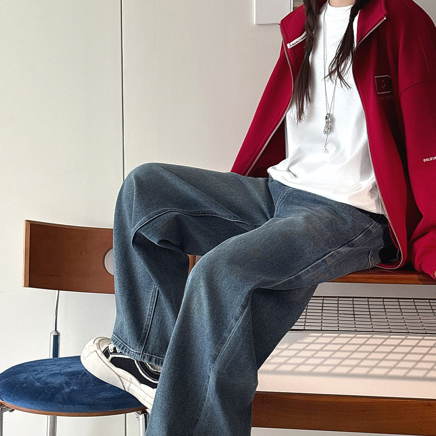 【中蓝调】初中生女牛仔裤2026春装新款青少年学生休闲直筒长裤子