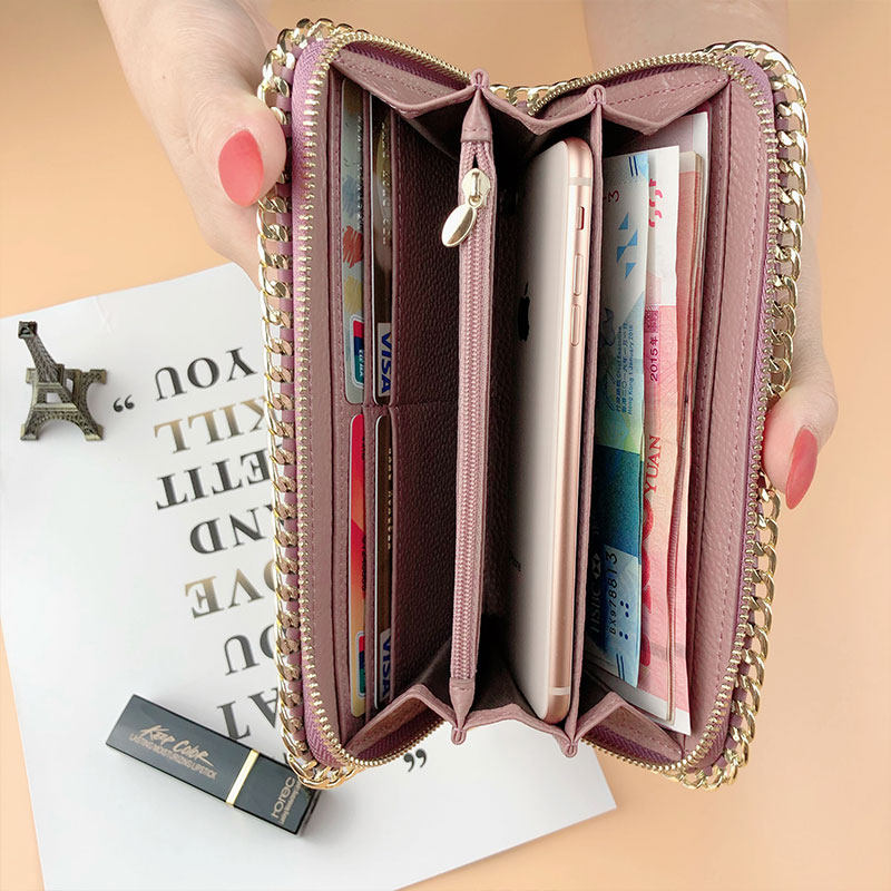 钱包女士2025新款时尚复古拉链长款真皮卡包女大容量高级感手拿包