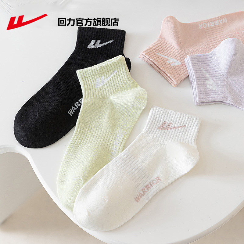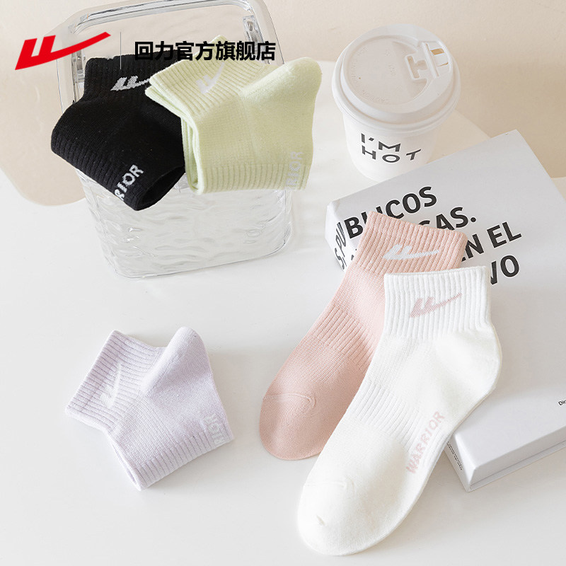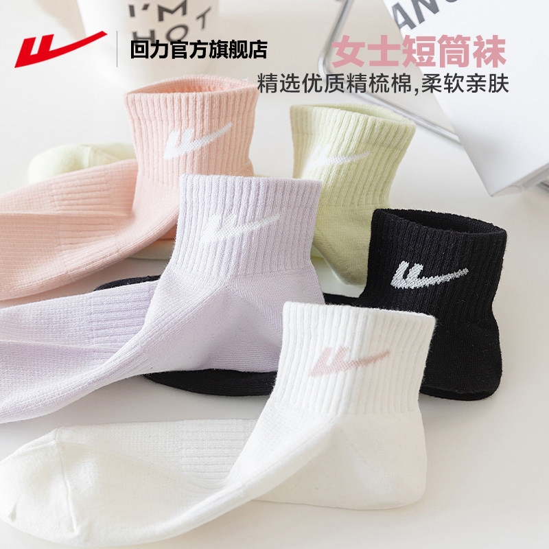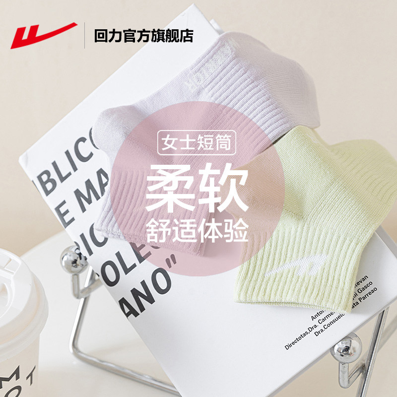 回力运动袜子女亲肤防滑短筒袜棉袜黑白纯色抗菌透气女士纯棉袜子