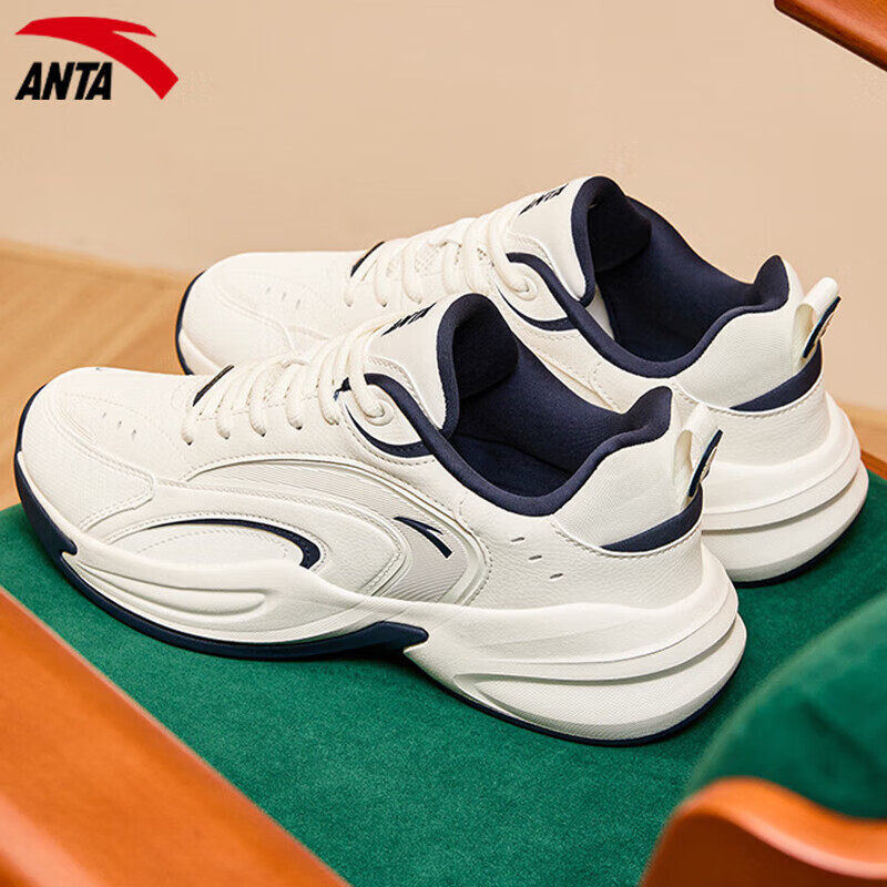 安踏男鞋运动鞋跑步鞋皮面厚底2026春季新款增高老爹潮鞋休闲鞋子