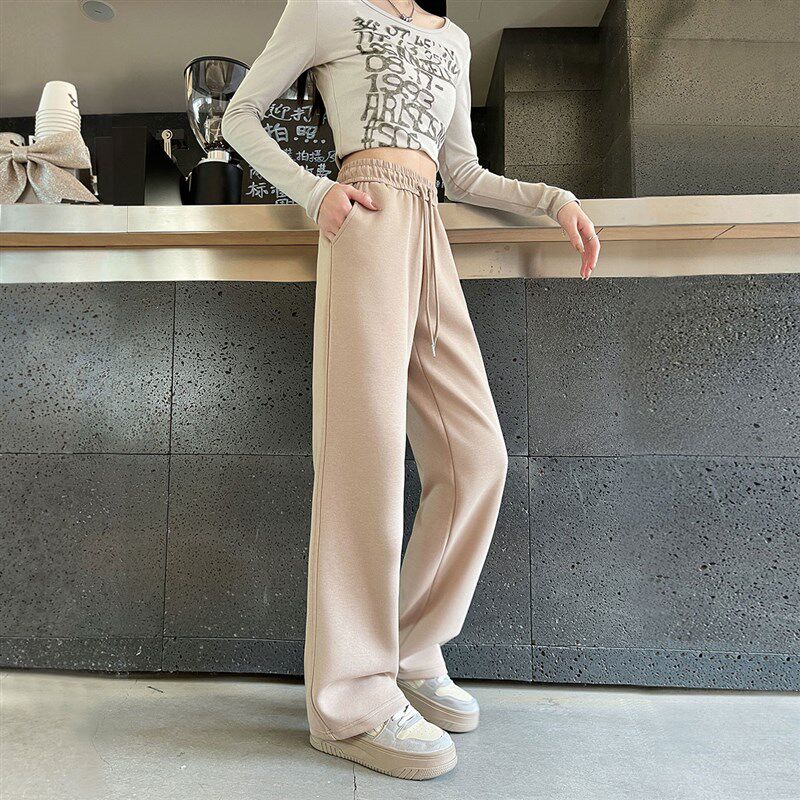 青少年高中初中学生少女加长版裤子高个子春秋宽松直筒运动阔腿裤