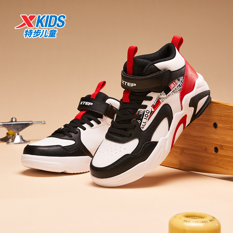 特步儿童新款皮面防滑板鞋运动鞋加绒二棉棉鞋子中大童男童鞋