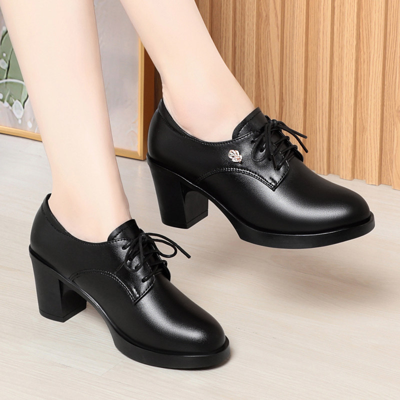 意尔康2026春季新款女鞋正品真皮女单鞋休闲时尚妈妈鞋高跟牛皮鞋