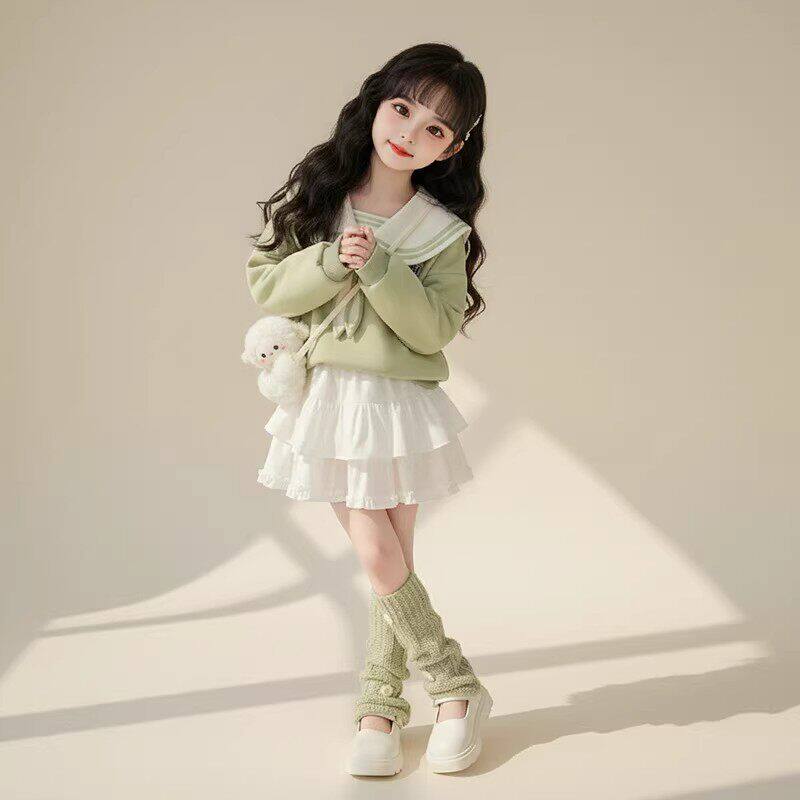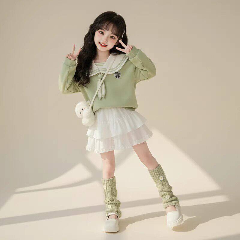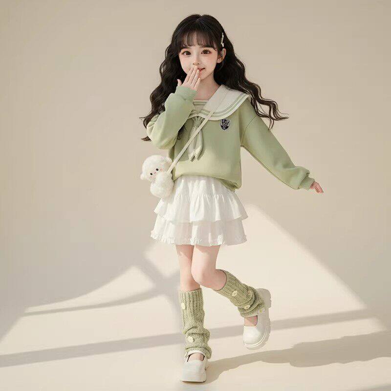 女童韩系学院风海军领长袖套装春季2026新款女大童洋气时髦连衣裙