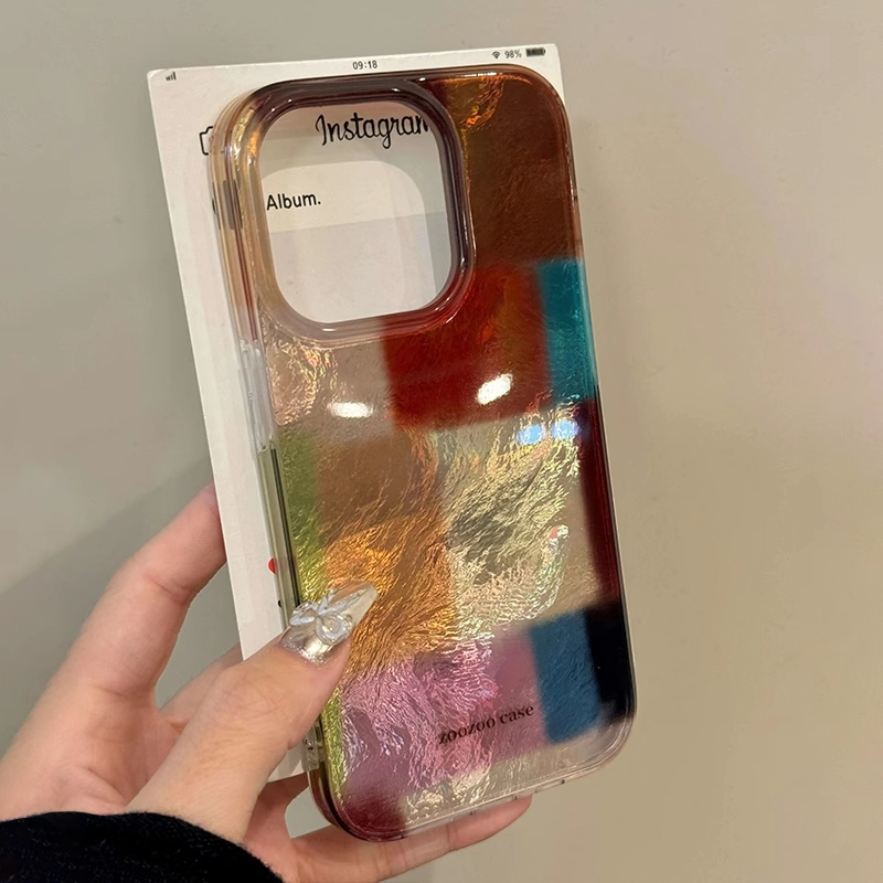 拼接撞色格子适用苹果16promax手机壳新款高级感15韩系创意14简约个性13全包防摔iphone16promax小众女套ins