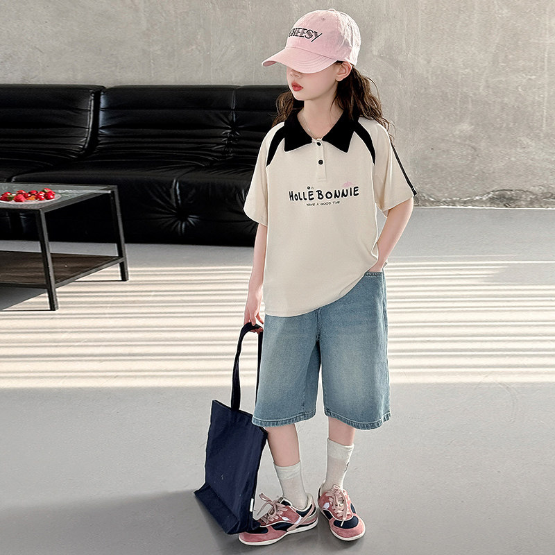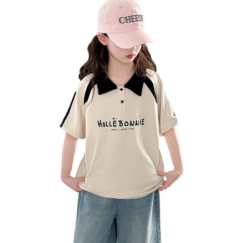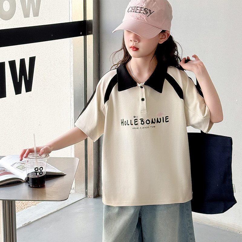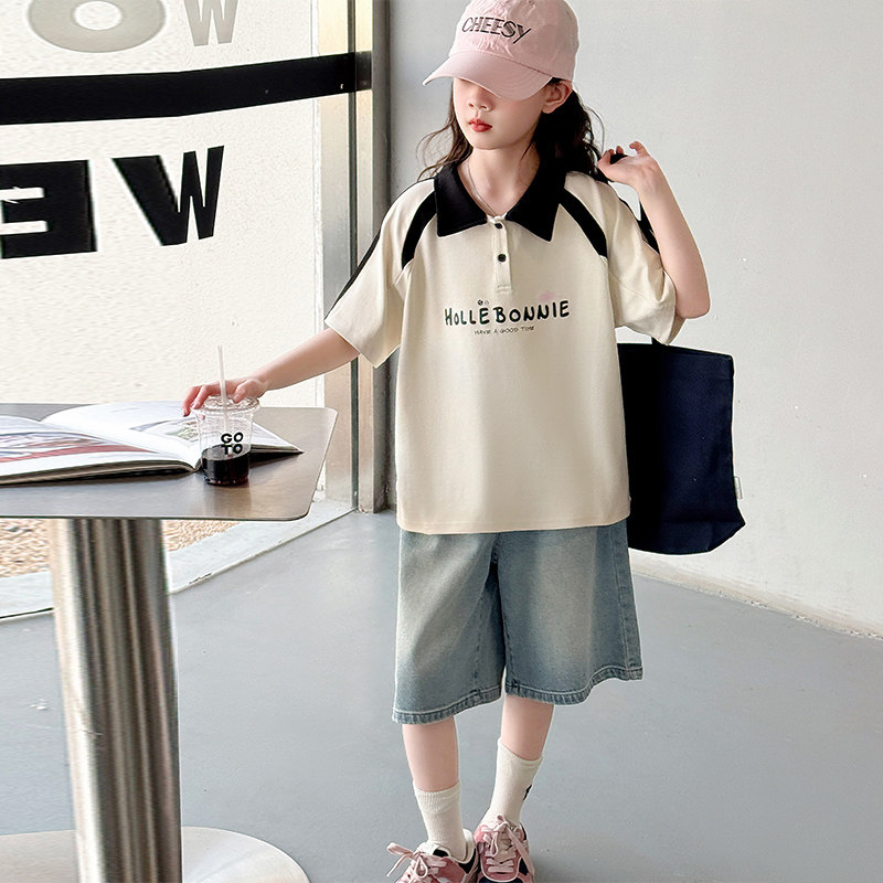 女童polo衫短袖T恤2026新款夏季女中大童翻领上衣T设计感潮款套装