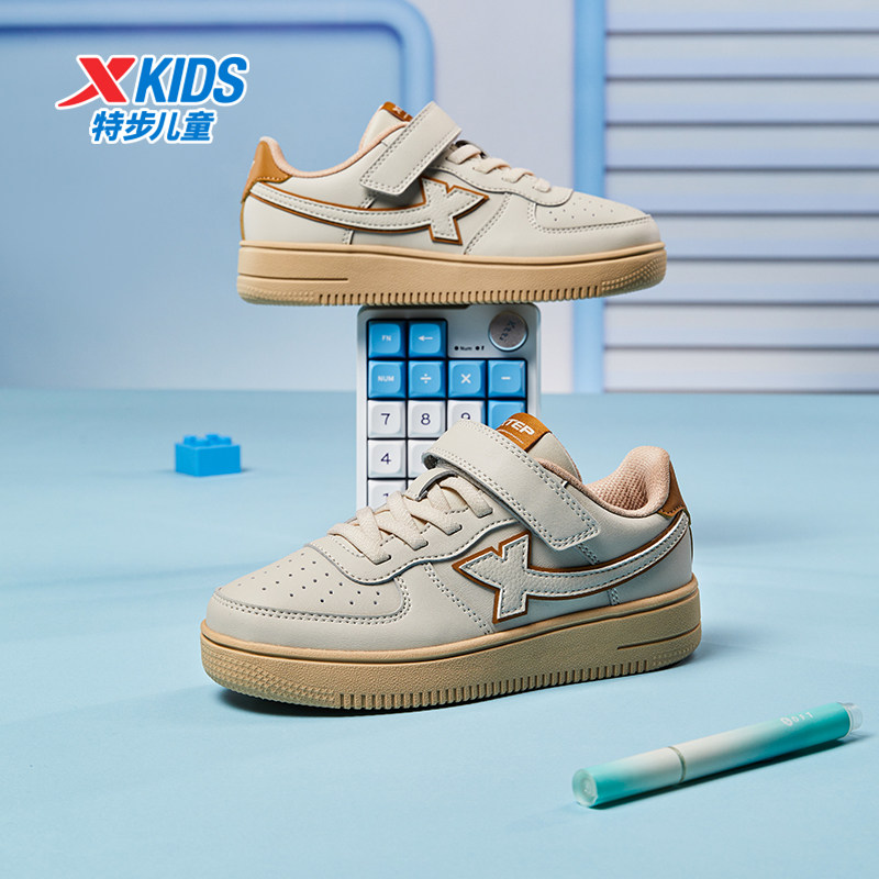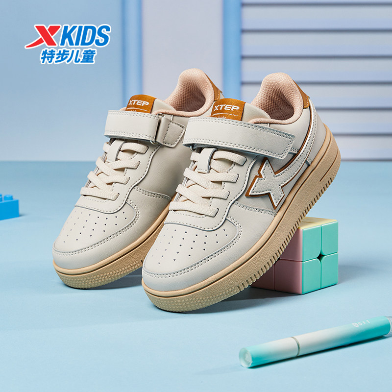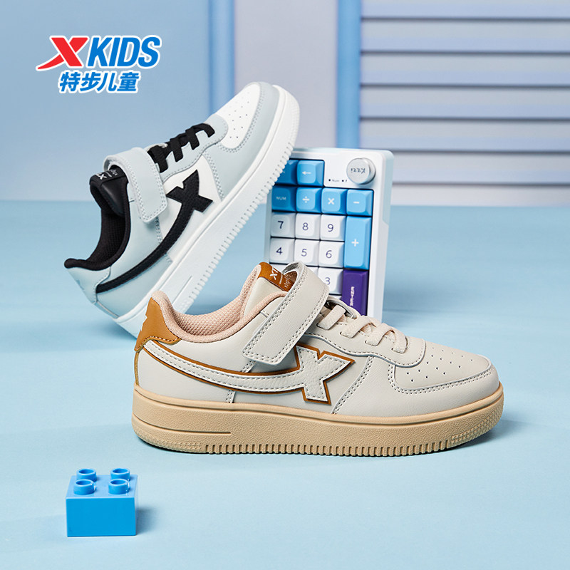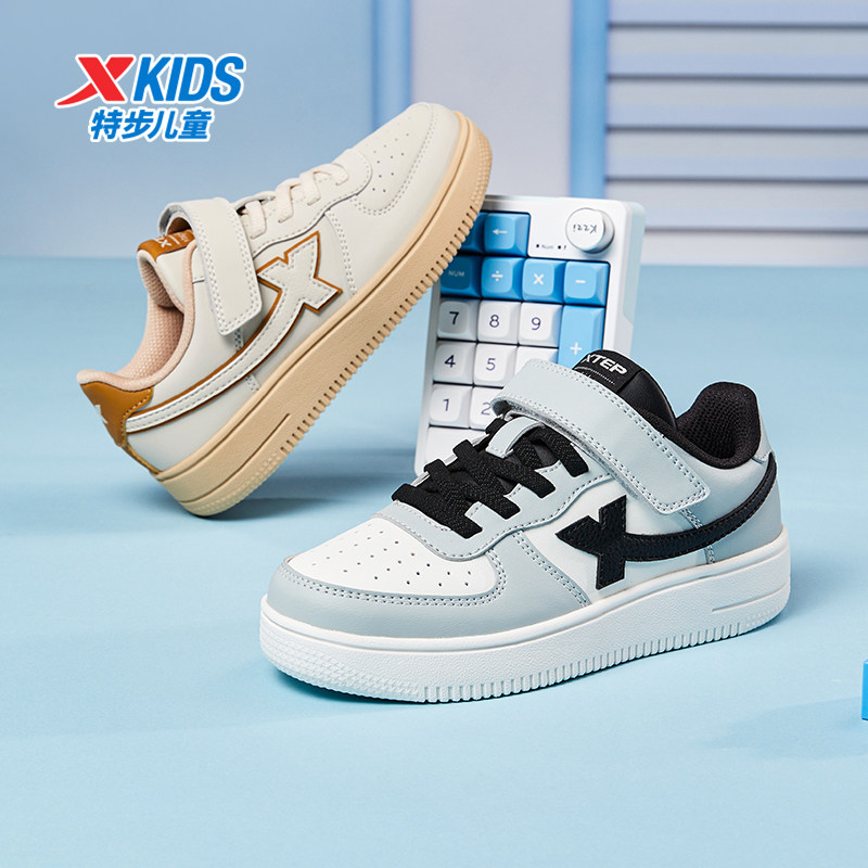 特步童鞋春秋儿童男童板鞋透气运动鞋黑白鞋子女童鞋休闲鞋小白鞋