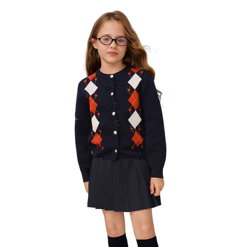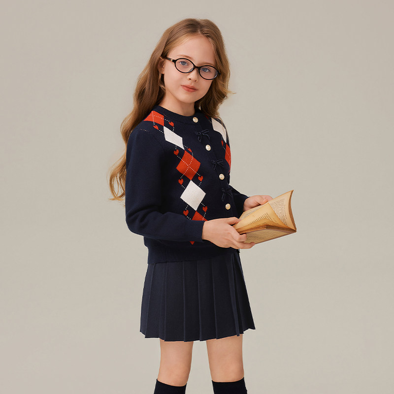 POLOWALK童装 女童长袖套装针织衫裙儿童两件套2025秋冬装短裙子