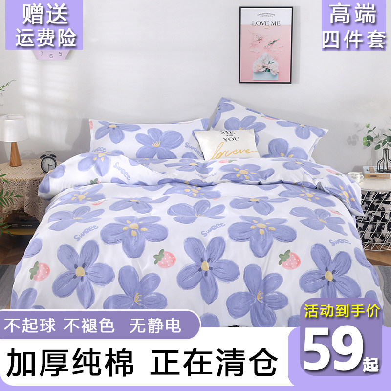 ins小清新纯棉四件套床品套件加厚100全棉床单被套宿舍三件套夏季