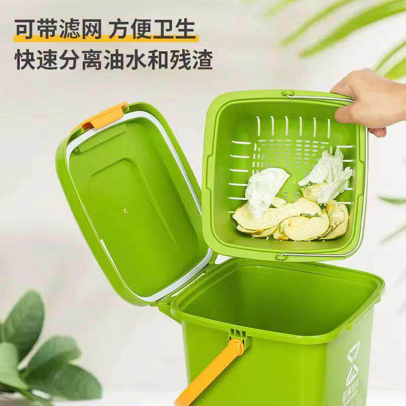 桌面厨房厨余过滤分类垃圾桶家用手提发酵密封防臭干湿分离绿灰色
