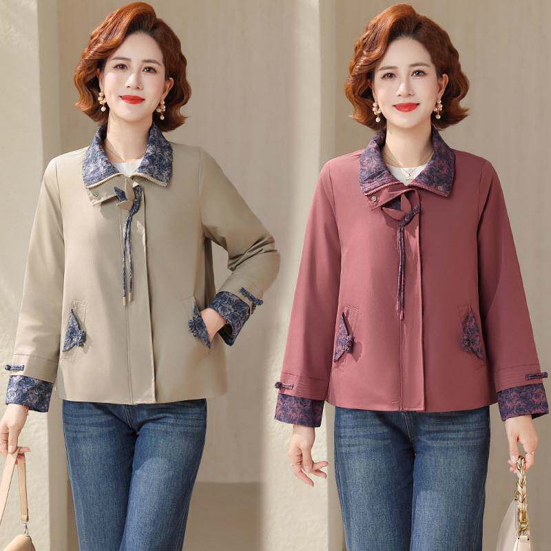官方品牌中老年人女款休闲夹克拉链开衫上衣妈妈新中式风春装翻领