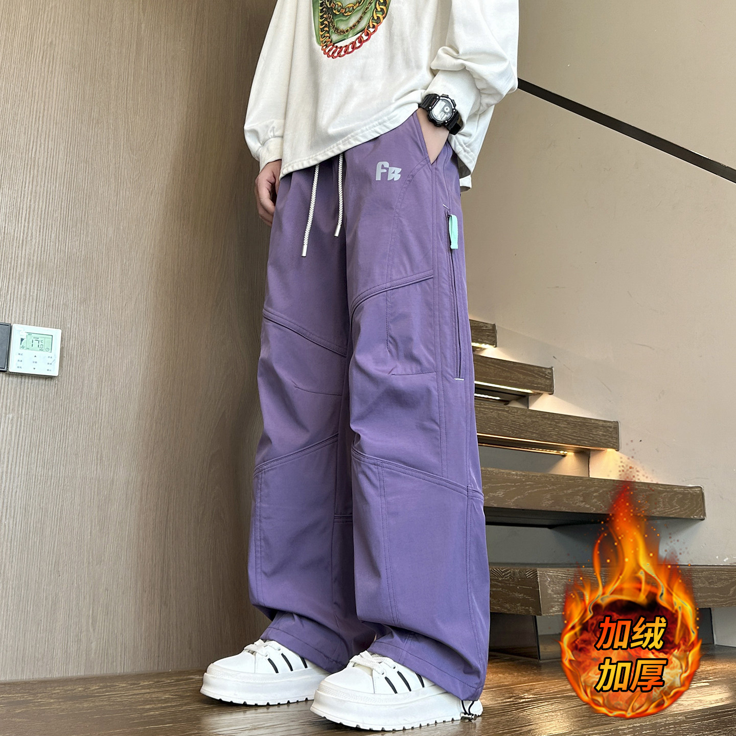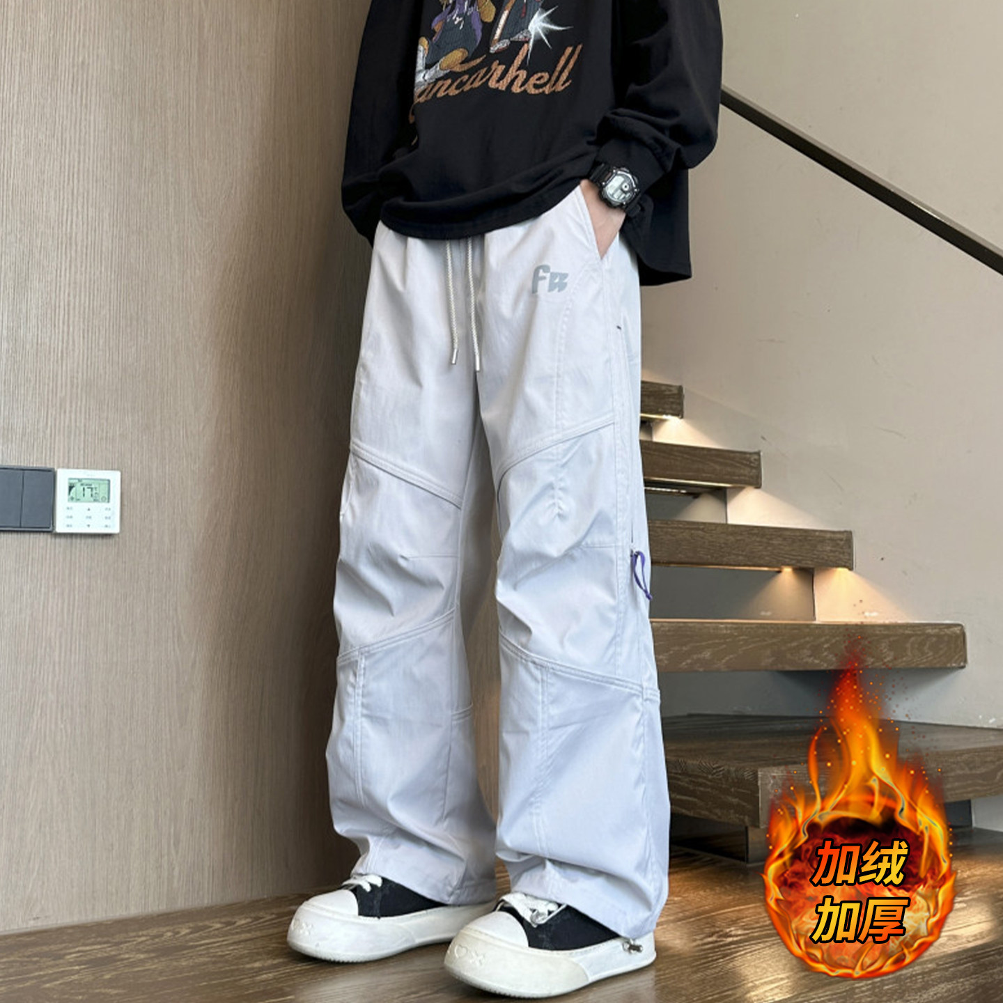 工装直筒长裤子男生秋冬季新款加绒加厚学生青少年运动休闲裤潮牌