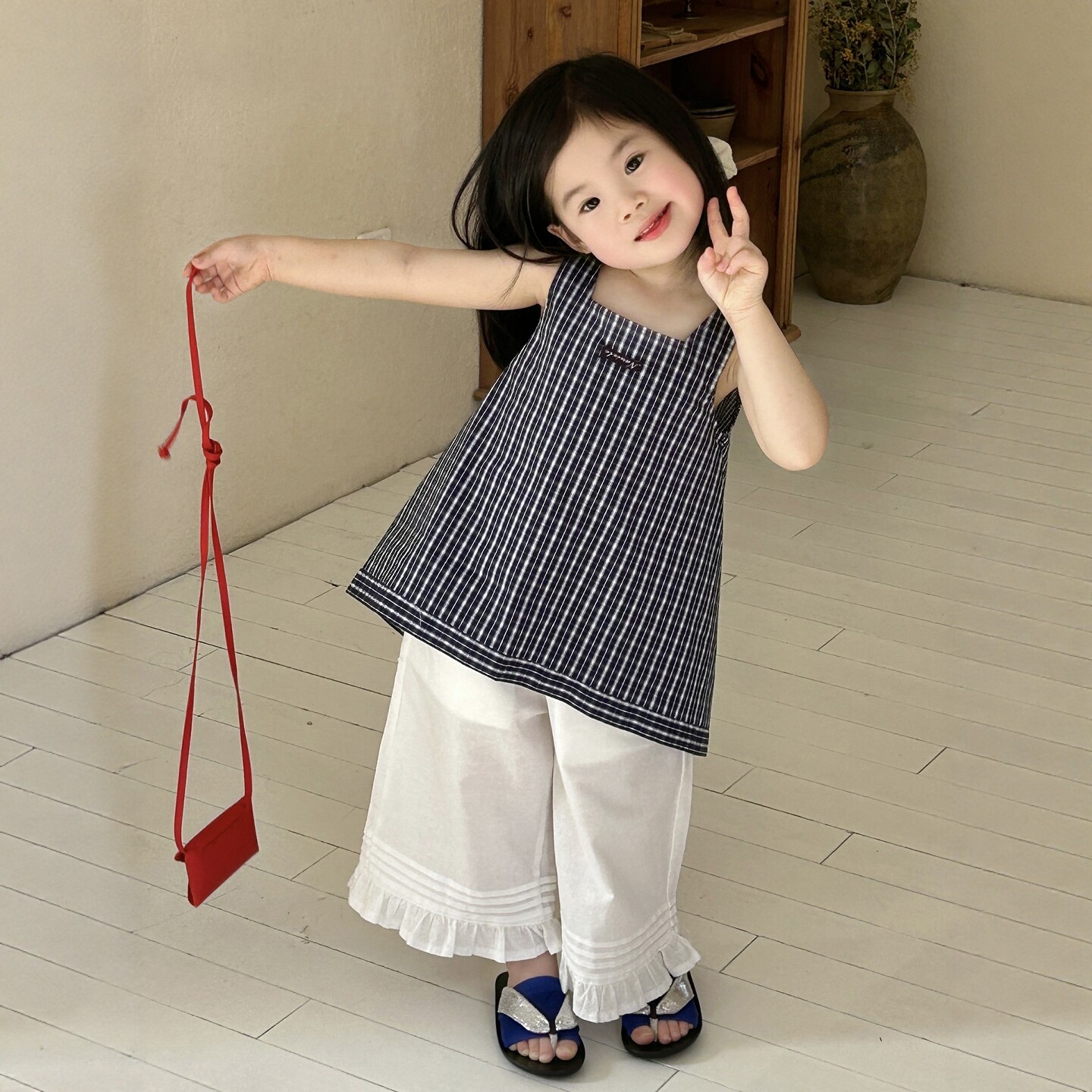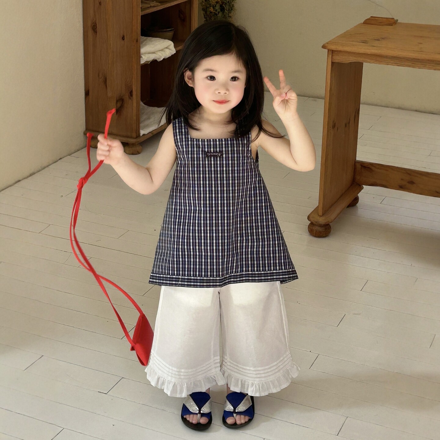 女童韩系穿搭格子吊带阔腿裤套装2026夏季新款儿童洋气超好看凉爽