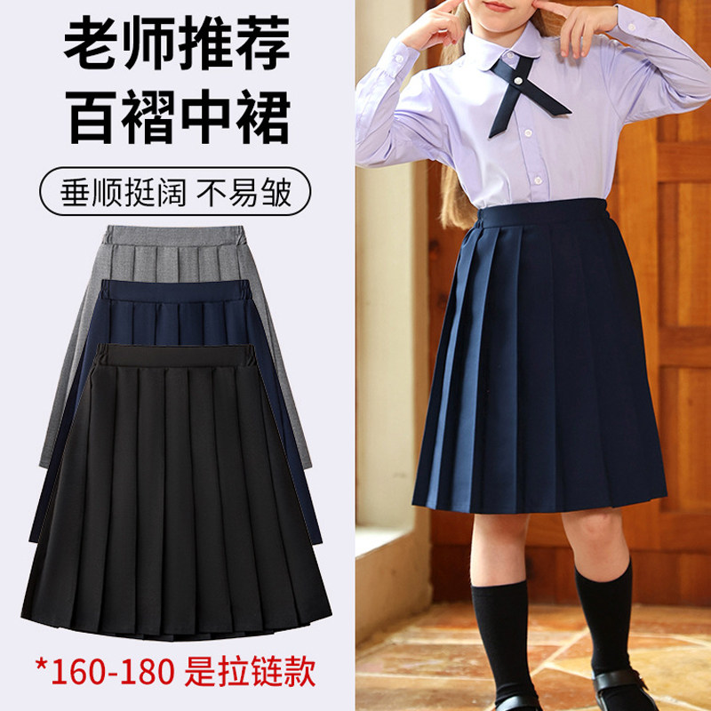 女童百褶裙中长款学院风校园表演班服大童半身裙儿童装短裙子毕业