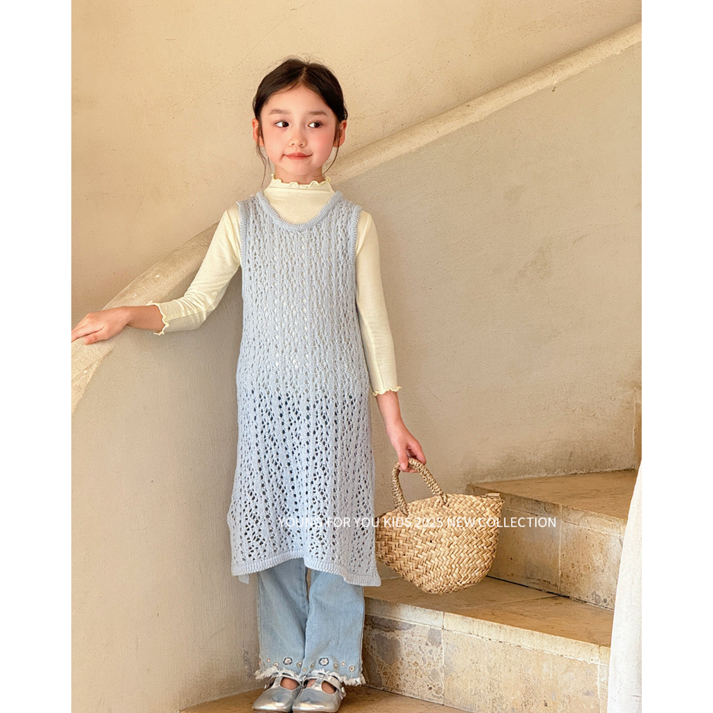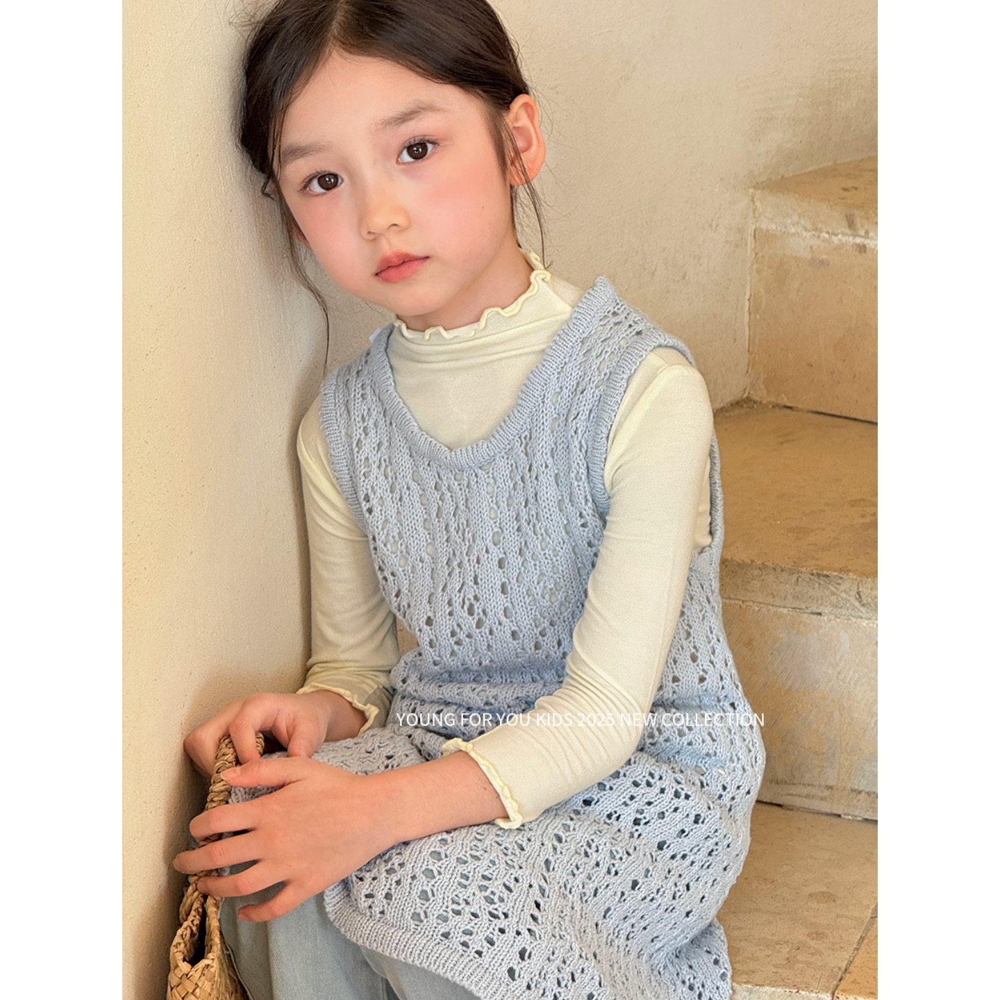 YFY女童春秋镂空针织背心裙韩版叠穿洋气毛衣裙可爱百搭连衣裙