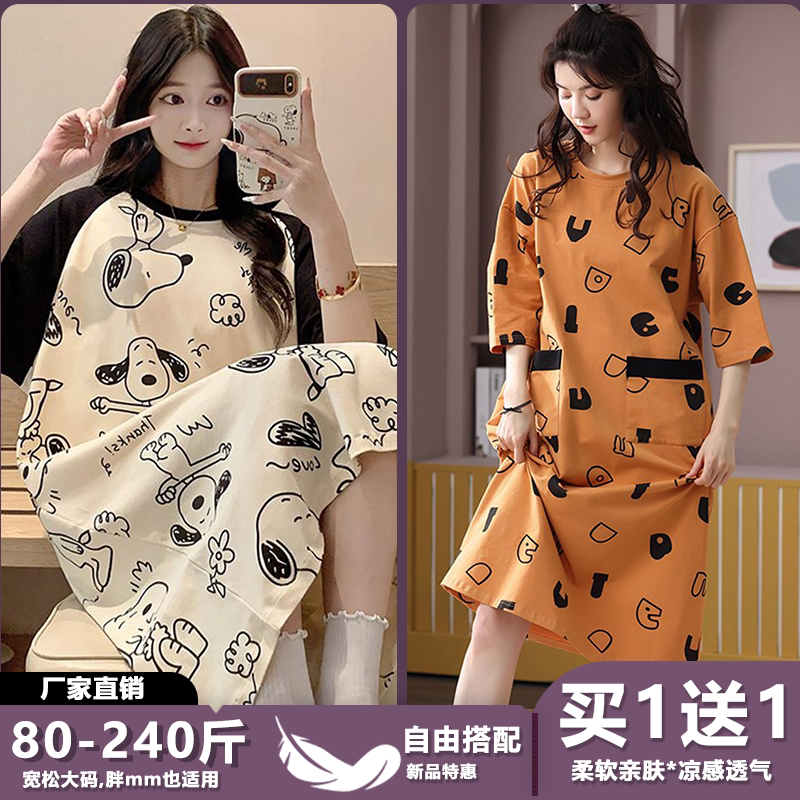 睡裙女宽松夏季薄款条纹睡衣大码200斤短袖孕妇胖mm连衣裙家居服
