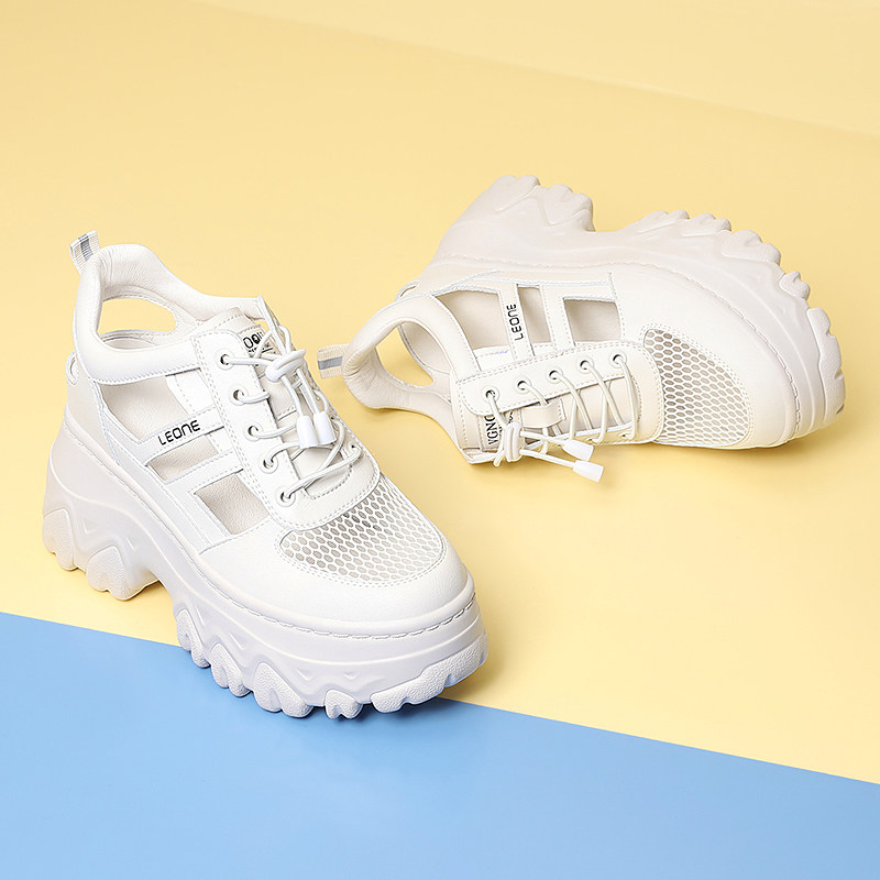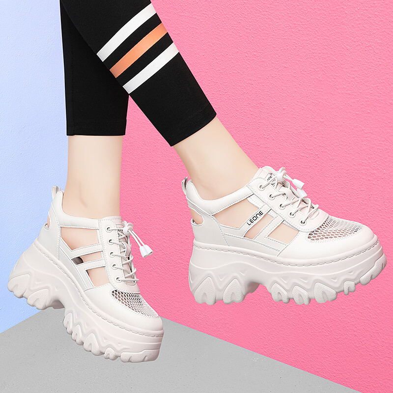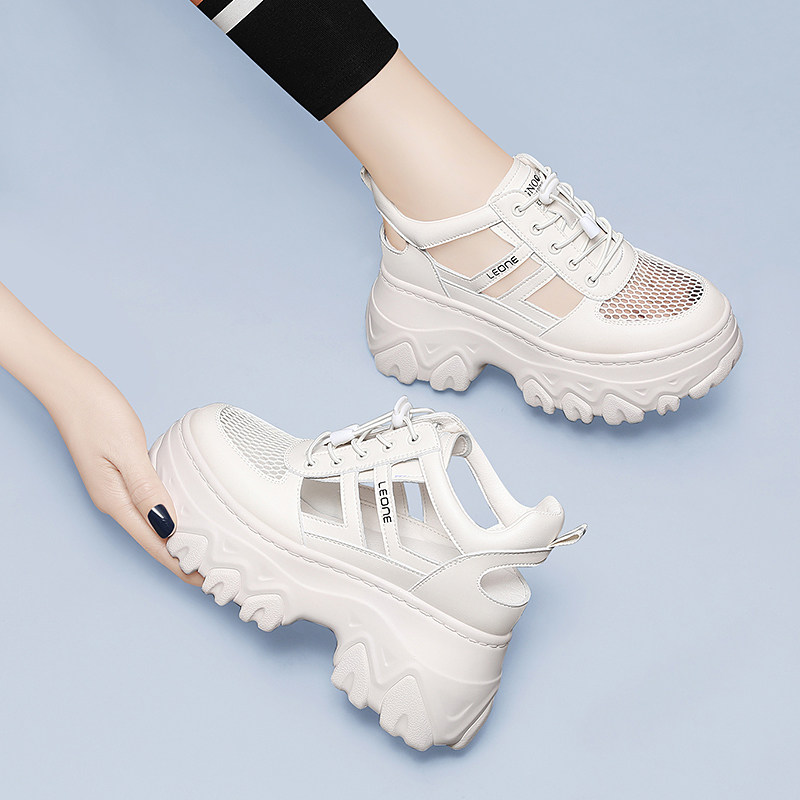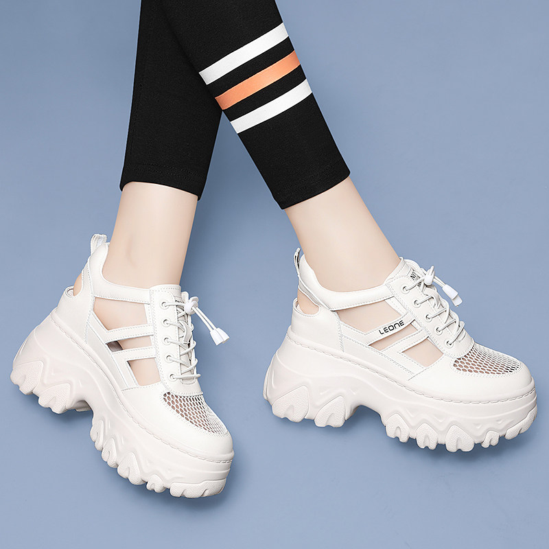 网面镂空小白鞋女士夏季薄款透气网鞋白色运动老爹内厚底凉鞋