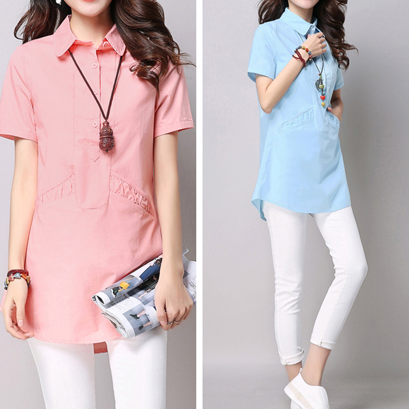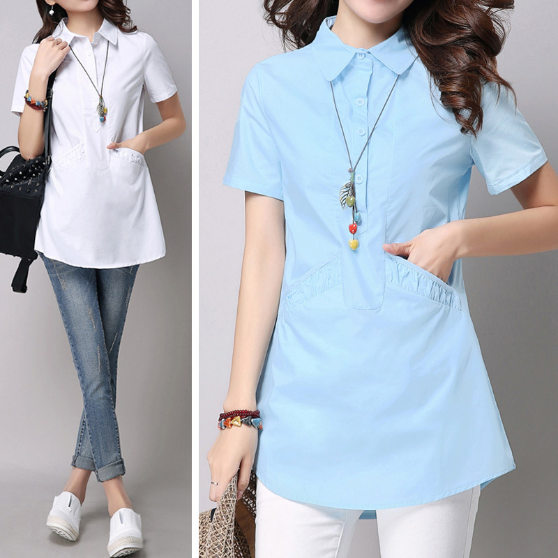 中长款衬衫女遮屁股洋气天蓝色女款2026新款夏天长板气质女士上衣