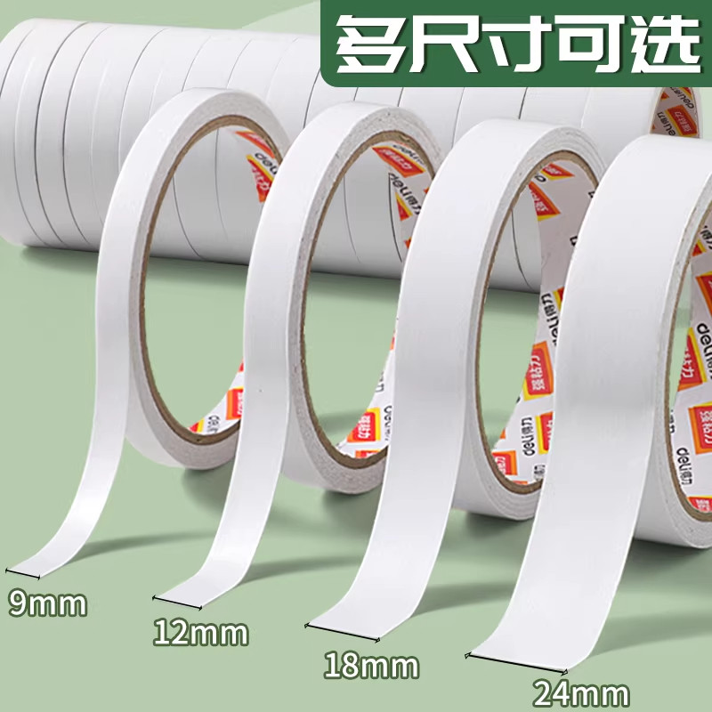 得力双面胶学生用高粘度薄款手工棉纸两面强力透明不留痕胶带布