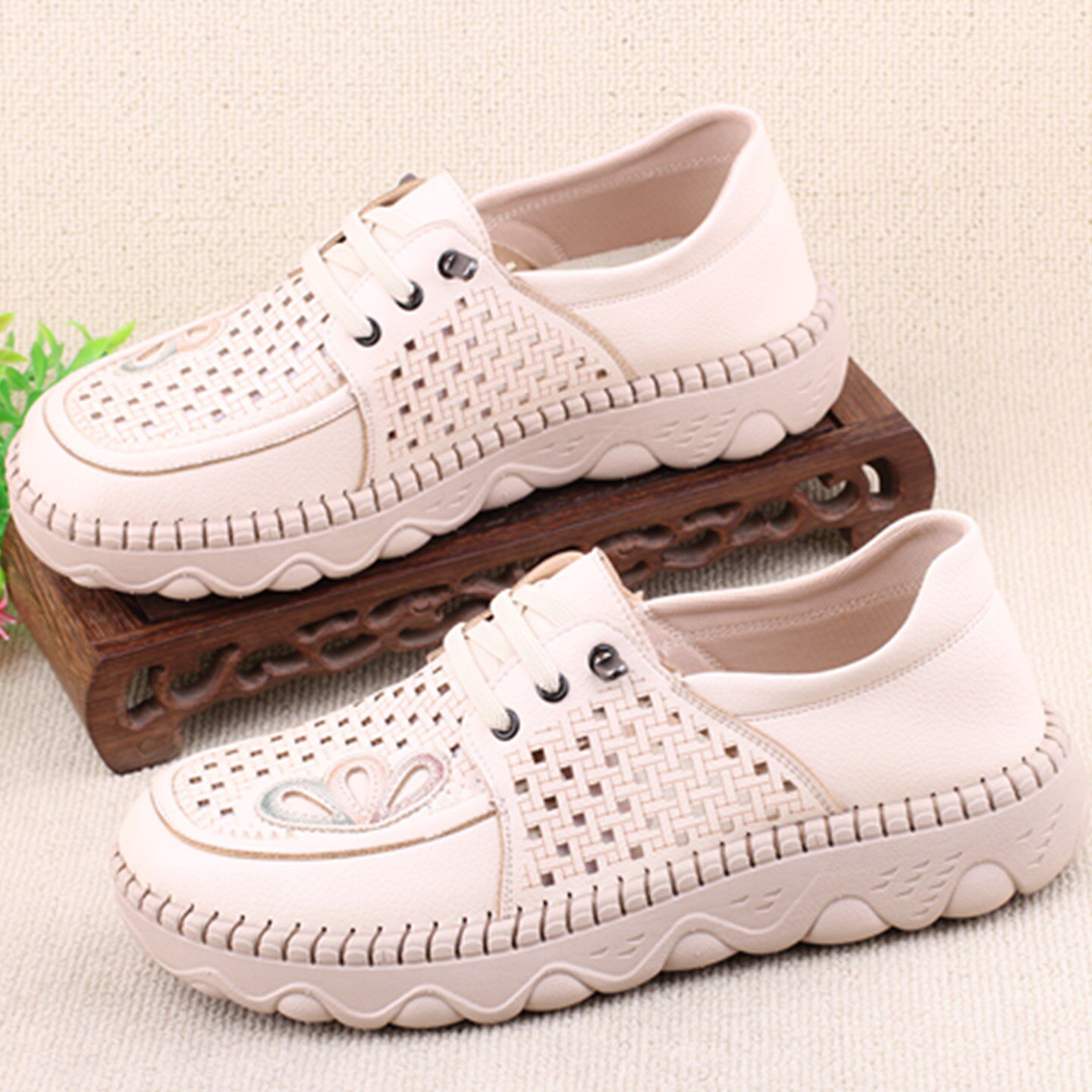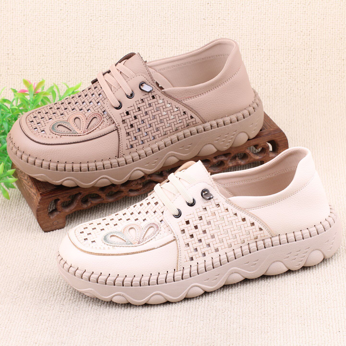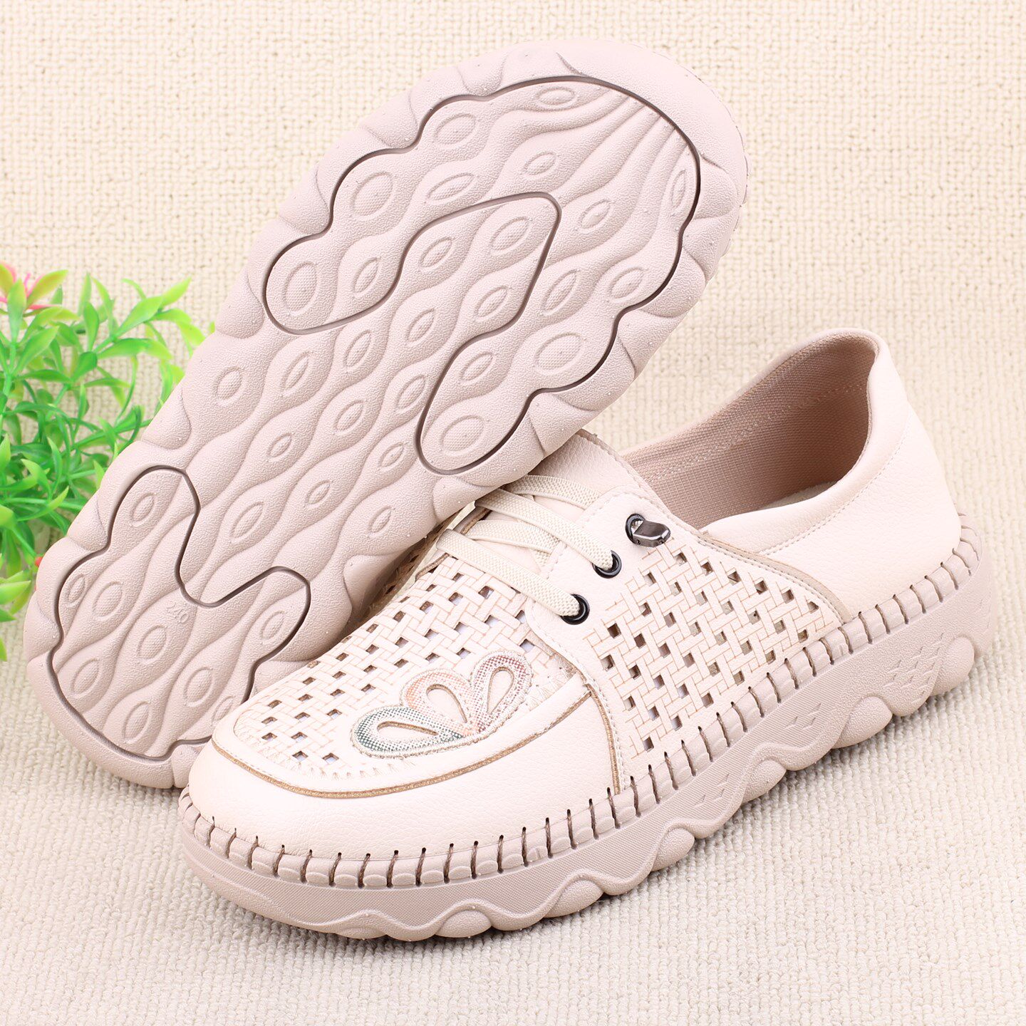 老北京布鞋女款夏季透气透气妈妈网面鞋超轻底防滑舒适中年老年女