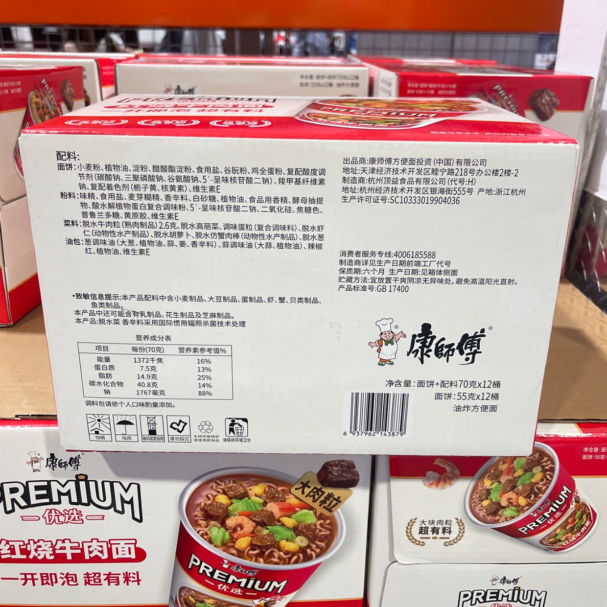 开市客代购康师傅优选红烧牛肉面桶装大肉粒方便面泡面牛肉面代餐
