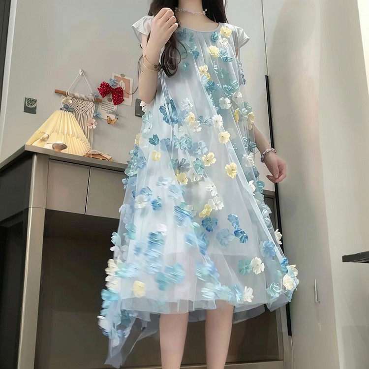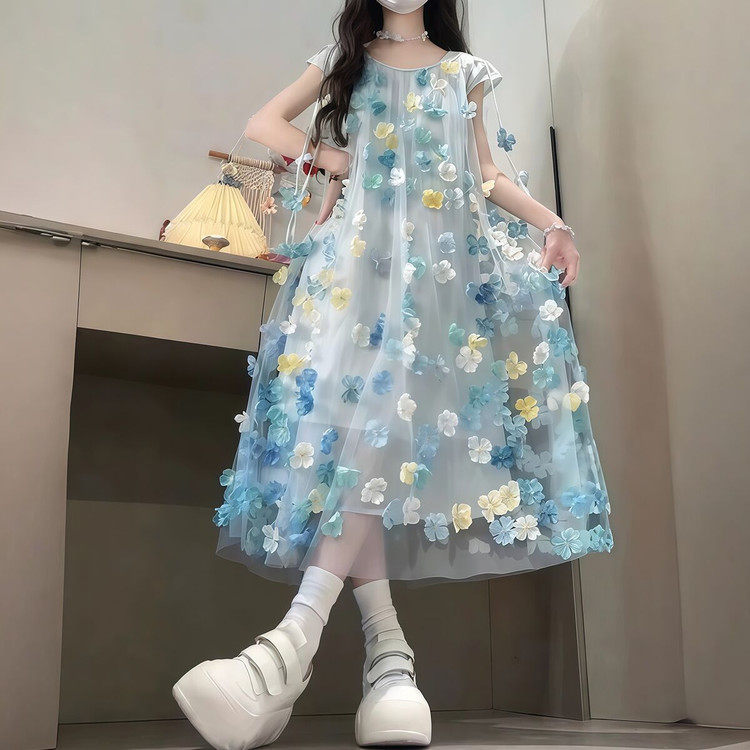 女童夏季连衣裙立体花朵纱裙无袖公主裙2026新款洋气儿童大童夏款