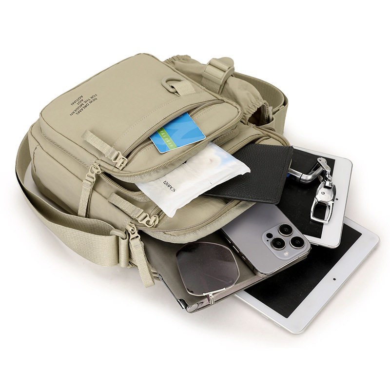 轻便户外多层大容量单肩包2025新款简约百搭尼龙布小方包男斜挎包
