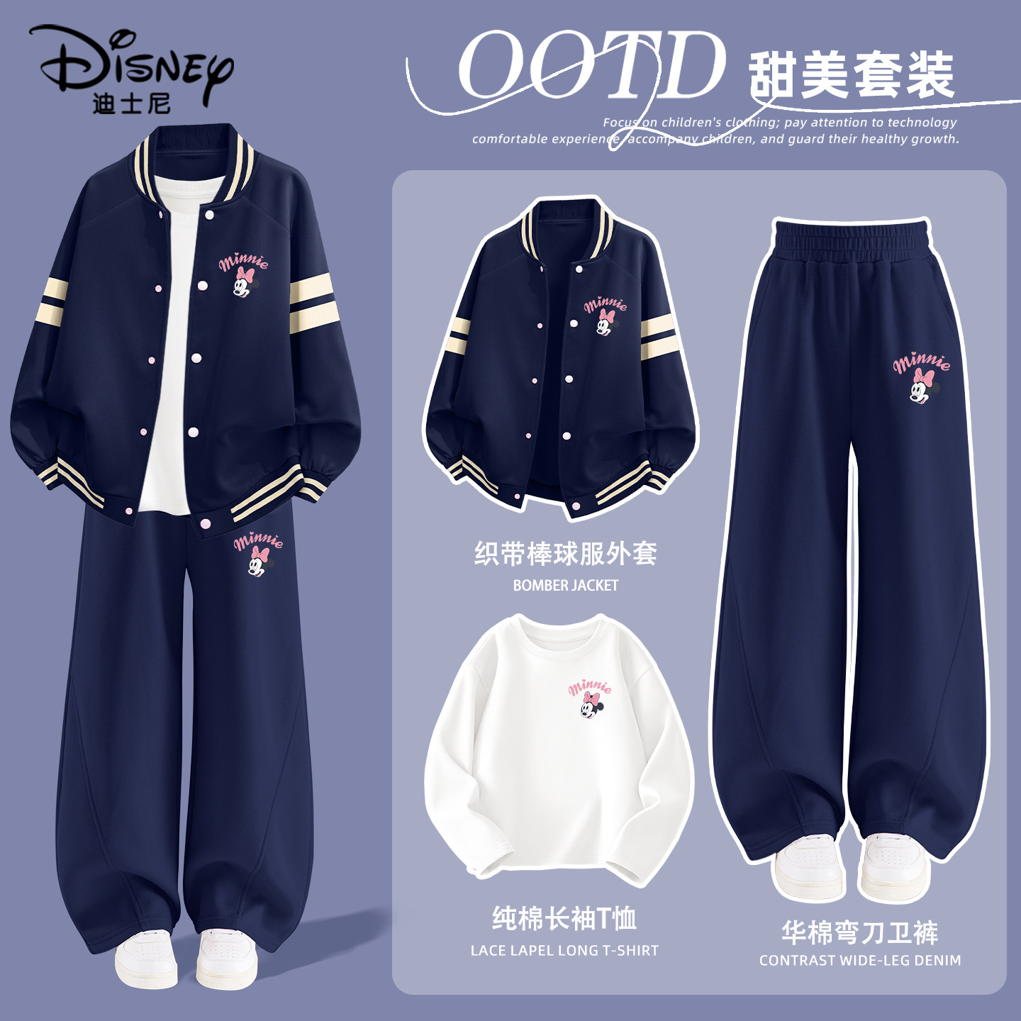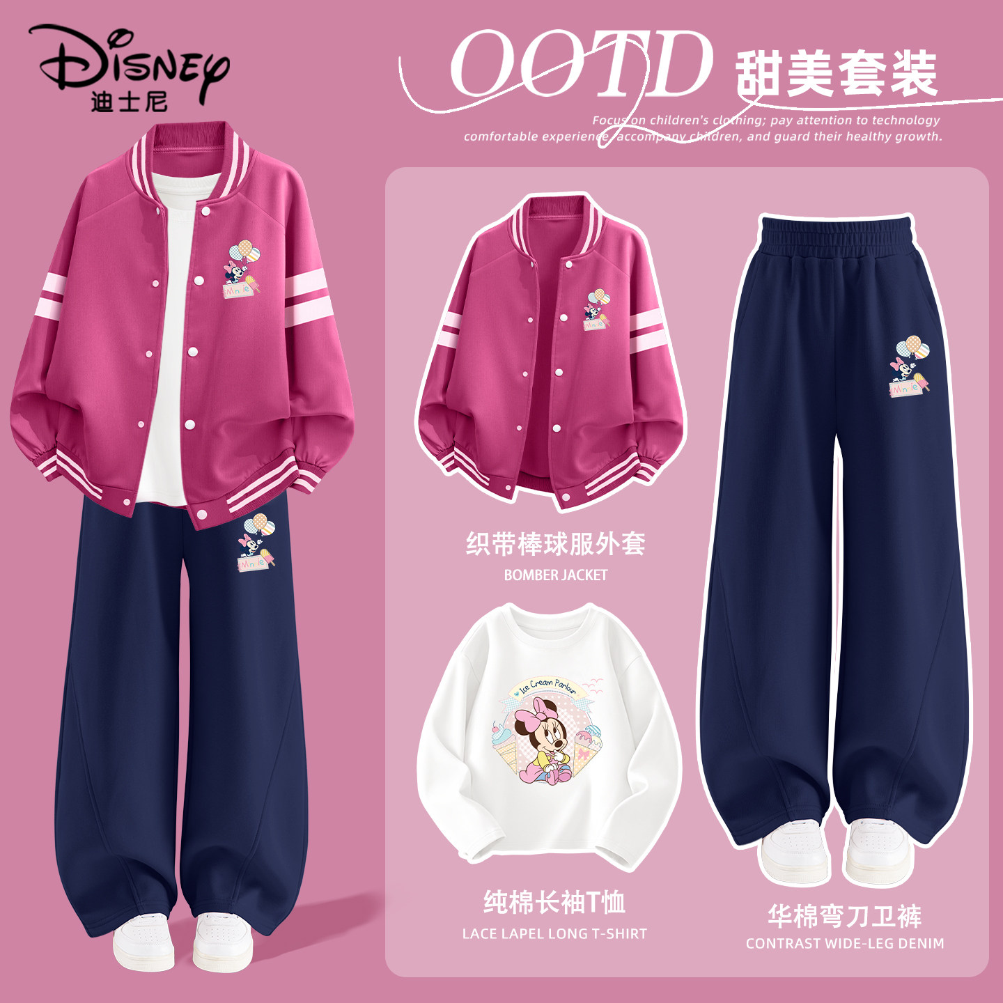 迪士尼女童春装套装2026新款童装女孩长袖外套三件套儿童运动服潮
