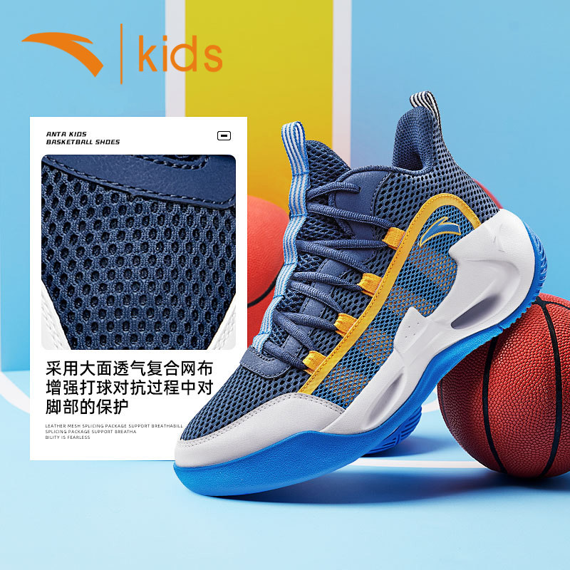 安踏童鞋儿童篮球鞋网面透气官方旗舰春季男童高帮运动鞋男中大童