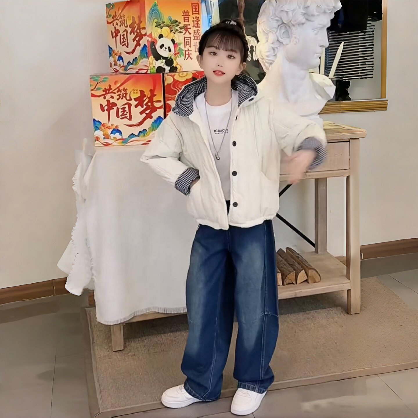 女童三件套秋冬夹棉绗棉外套女大童洋气时髦冬季加厚保暖棉衣二棉