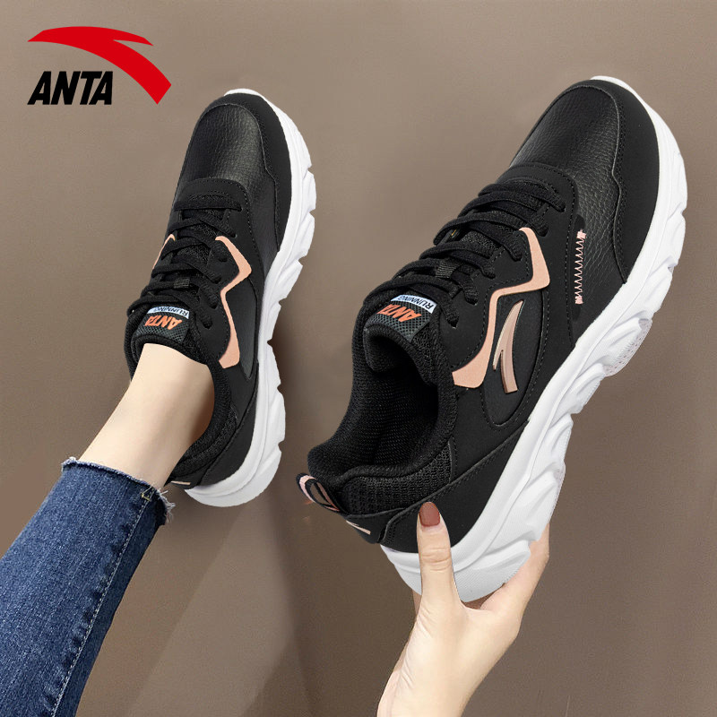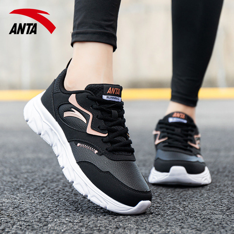 安踏女鞋2026夏季皮面防水跑步运动鞋女款官方旗舰减震软底休闲鞋