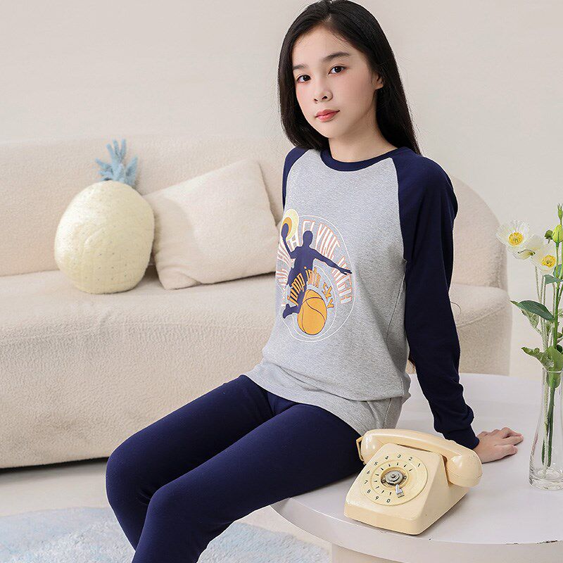 青少年秋衣秋裤女童薄款儿童内衣套装女孩纯棉女士大童秋装棉毛衫