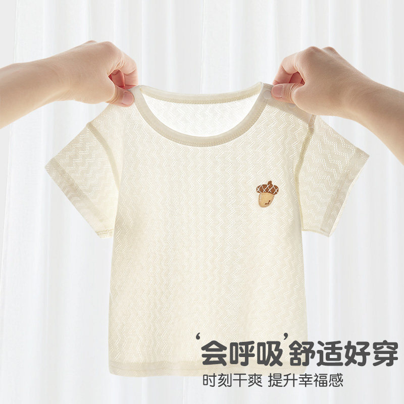 宝宝短袖短裤套装夏季薄款婴儿分体纯棉a类睡衣男童2026新款网眼