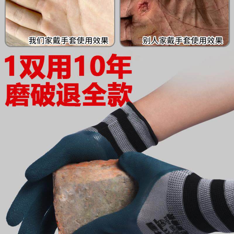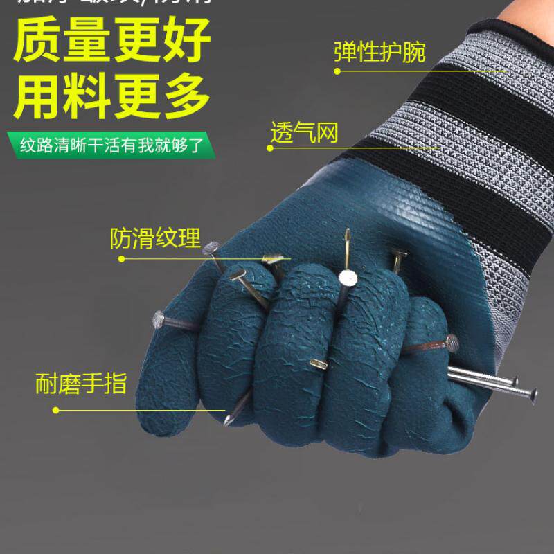 老劳保手套耐磨不烂工作乳胶防护橡胶工地专用干活防刺防水加厚