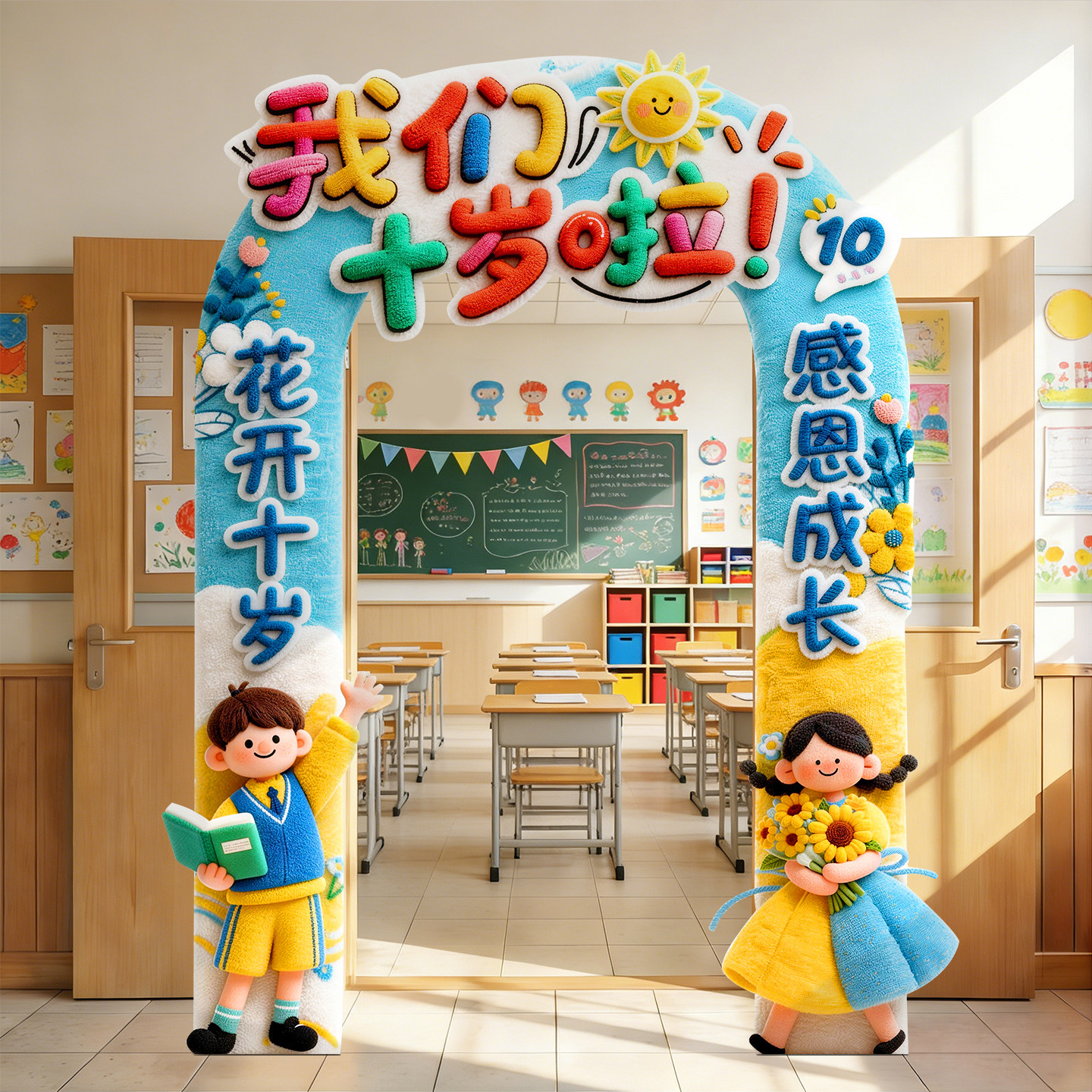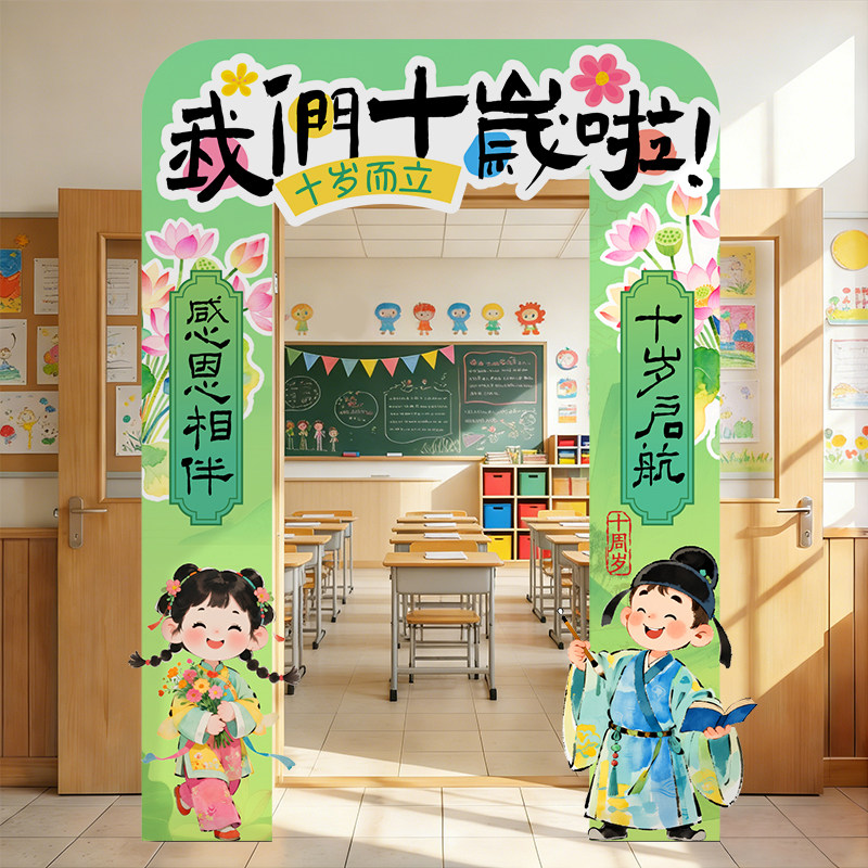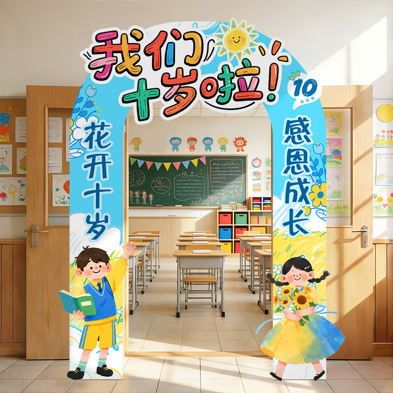10十岁成长礼场景布置班级教室装饰六一儿童节拱门kt板套装背景墙