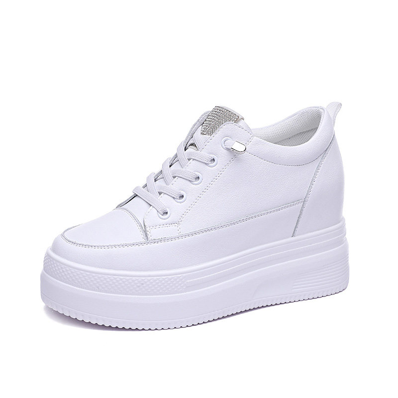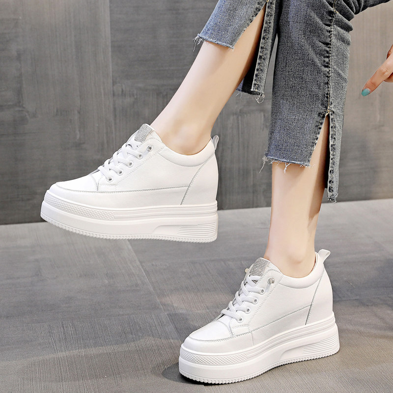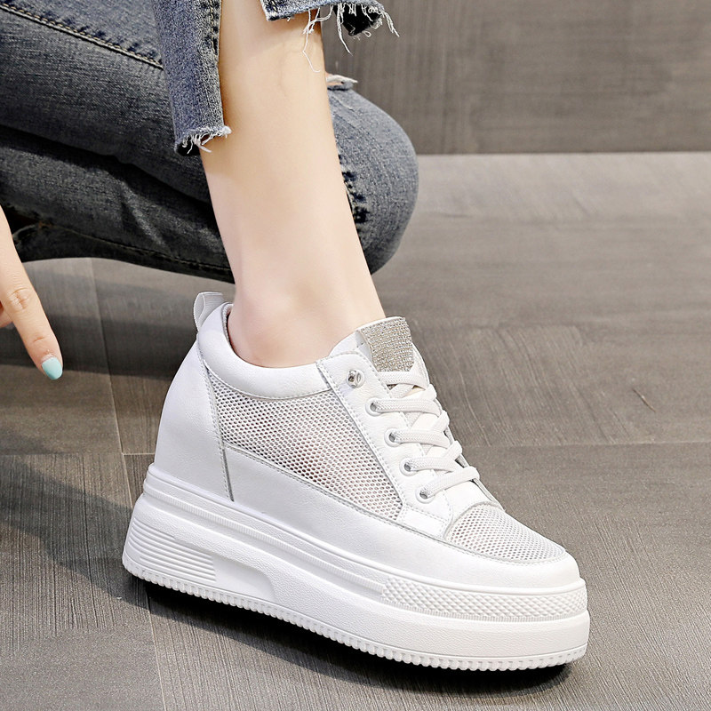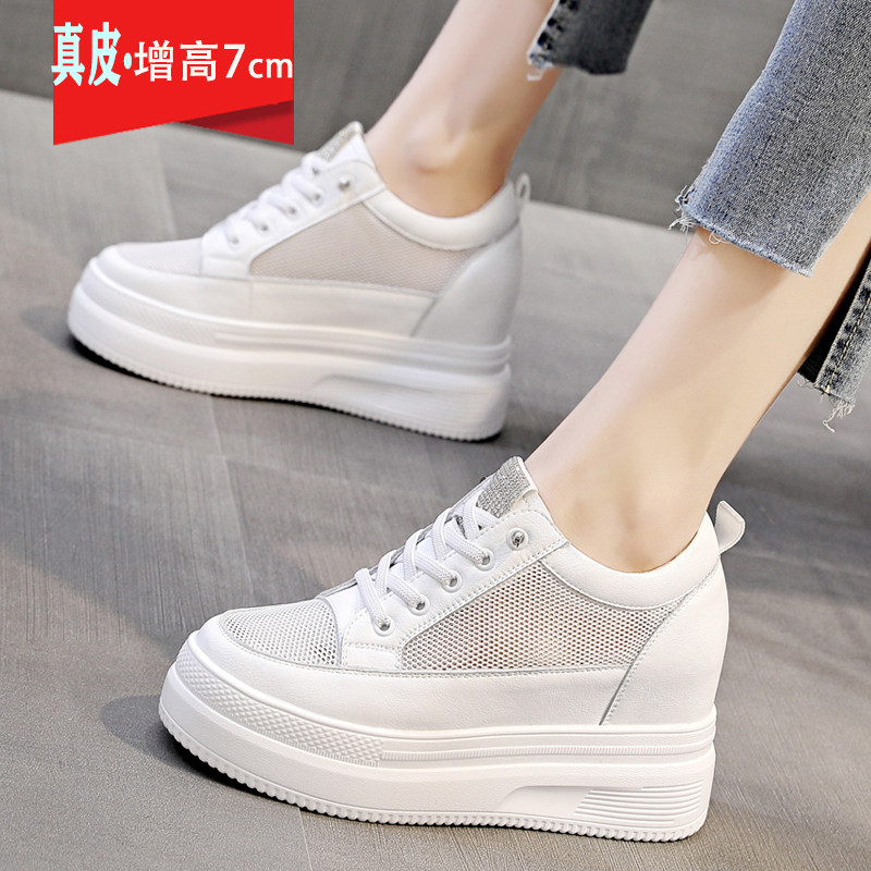 内增高女鞋真皮小白鞋女一脚蹬厚底坡跟单鞋学生网面休闲运动鞋子