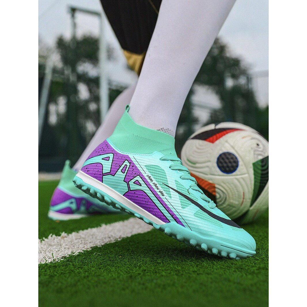 C罗刺客足球鞋男款碎钉ag长短钉tf女儿童学生高帮足球比赛训练鞋