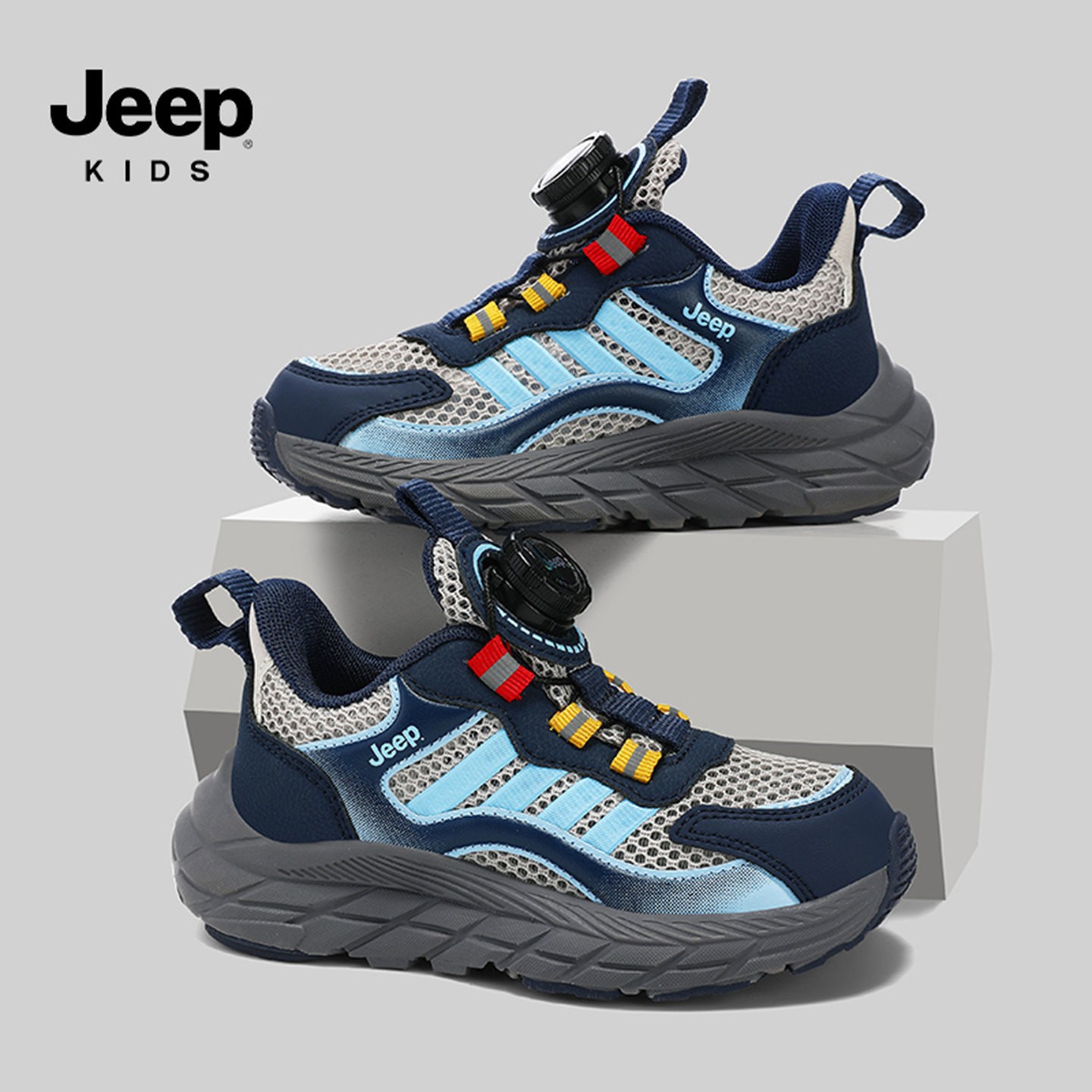 jeep儿童鞋子2026夏季比赛研学小学生黑色运动鞋单网女童跑步鞋男