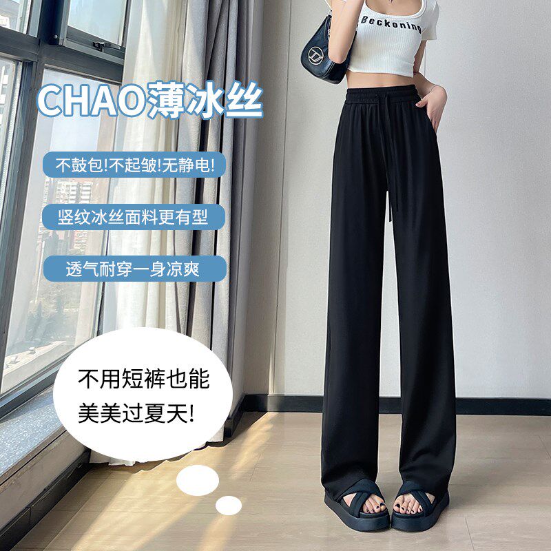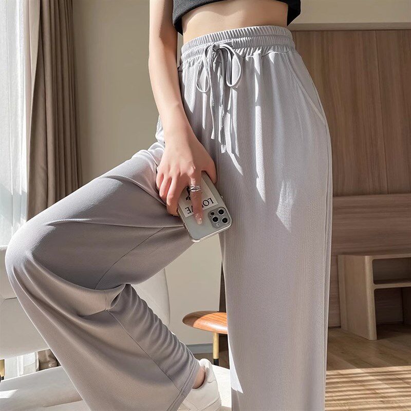 紫色冰丝阔腿裤女款夏季薄款2024新款显瘦防晒裤夏天速干休闲裤子