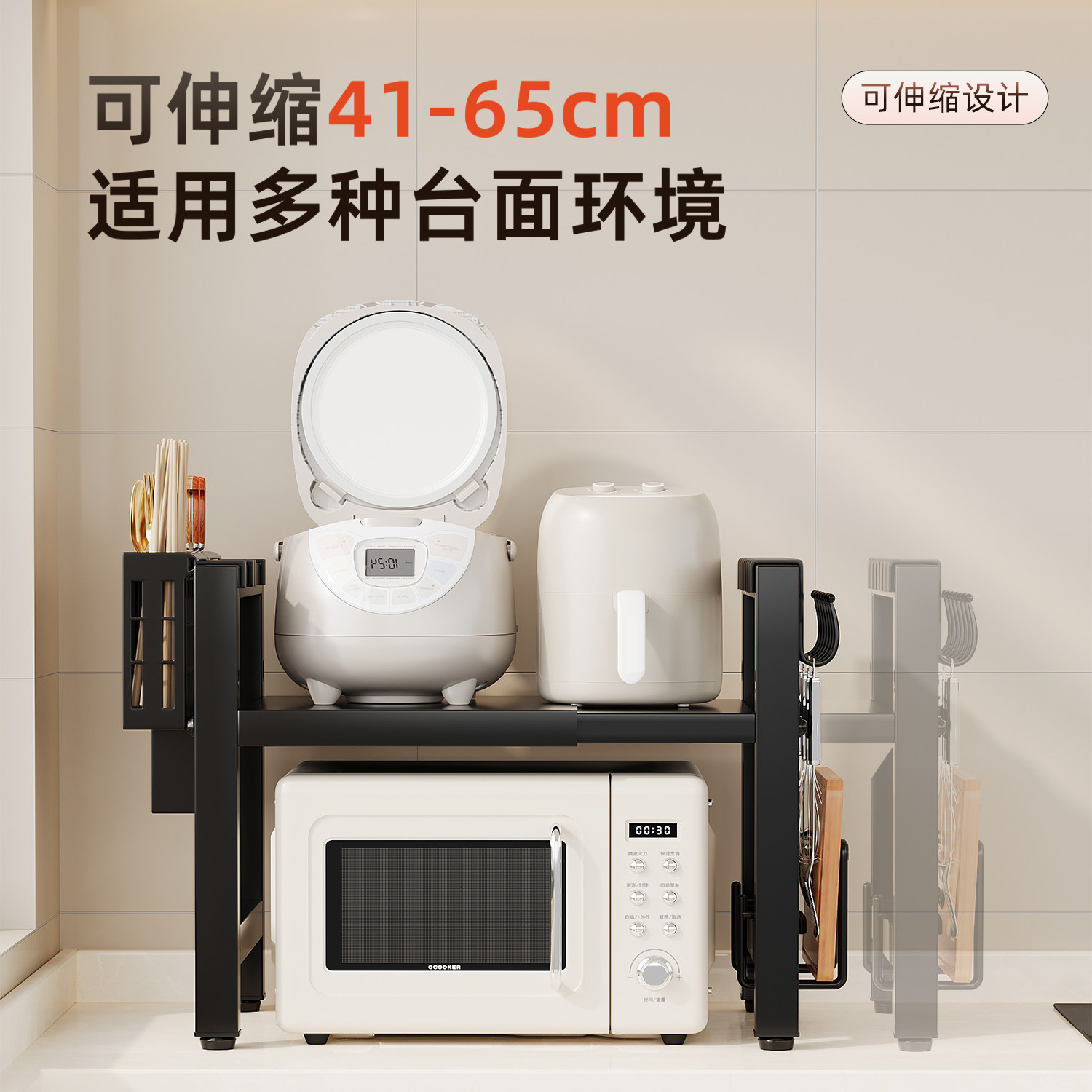 厨房微波炉置物架烤箱电饭煲台面多功能架子一体伸缩多层收纳支架