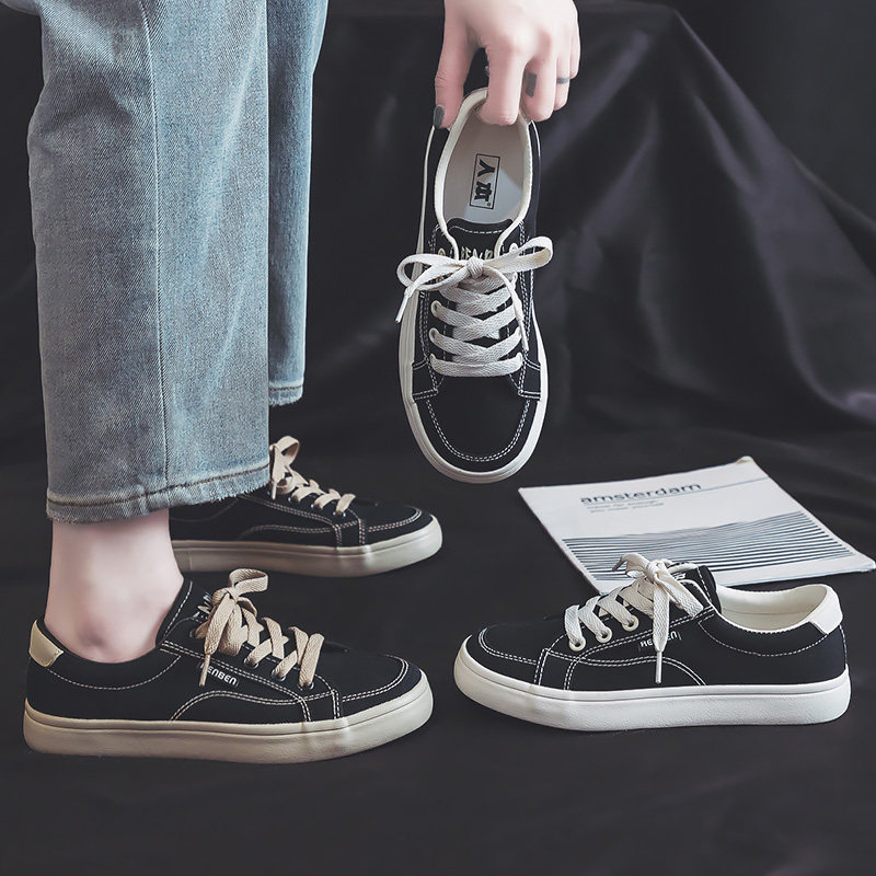 人本帆布鞋女款2026年春季新款低帮平底板鞋休闲百搭透气黑色女鞋