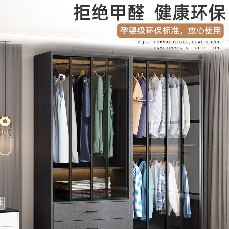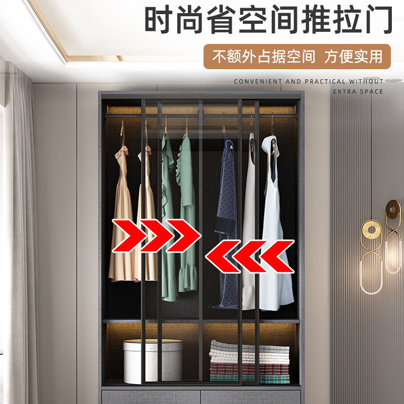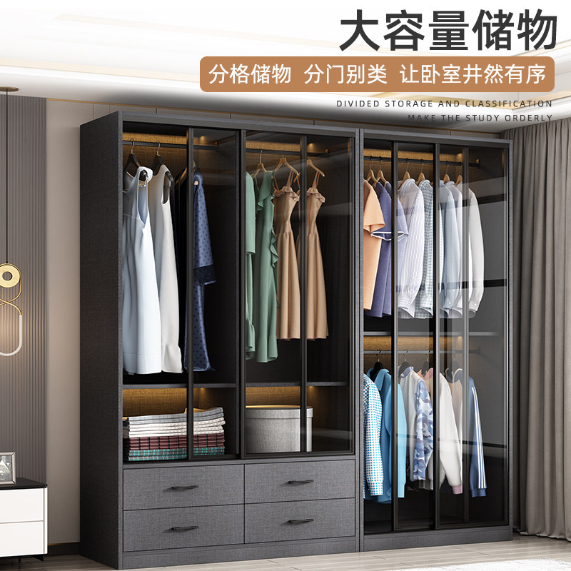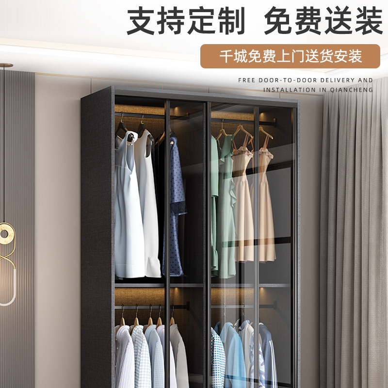 衣柜家用小户型定制实木组合卧室玻璃儿童轻奢出租房推拉门大衣橱